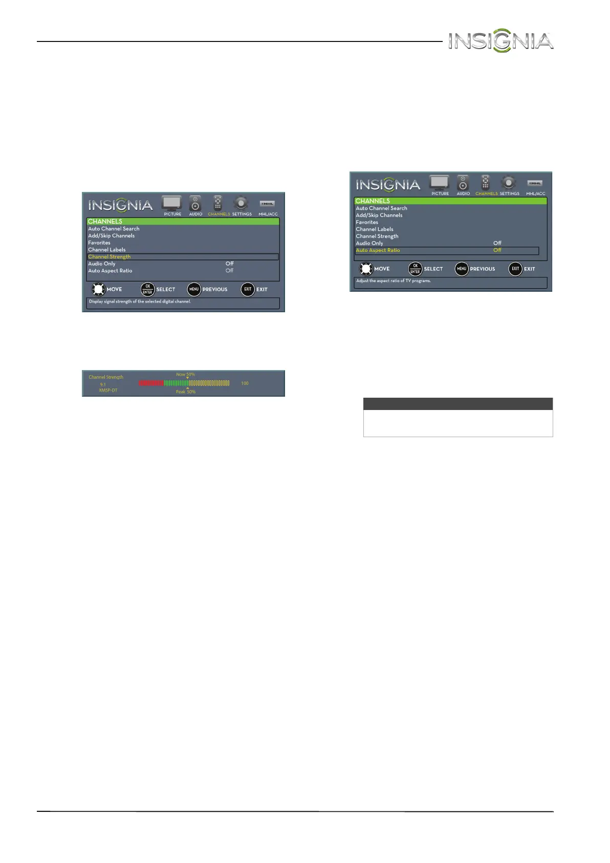 then press ENTER. The Channel Strength screen