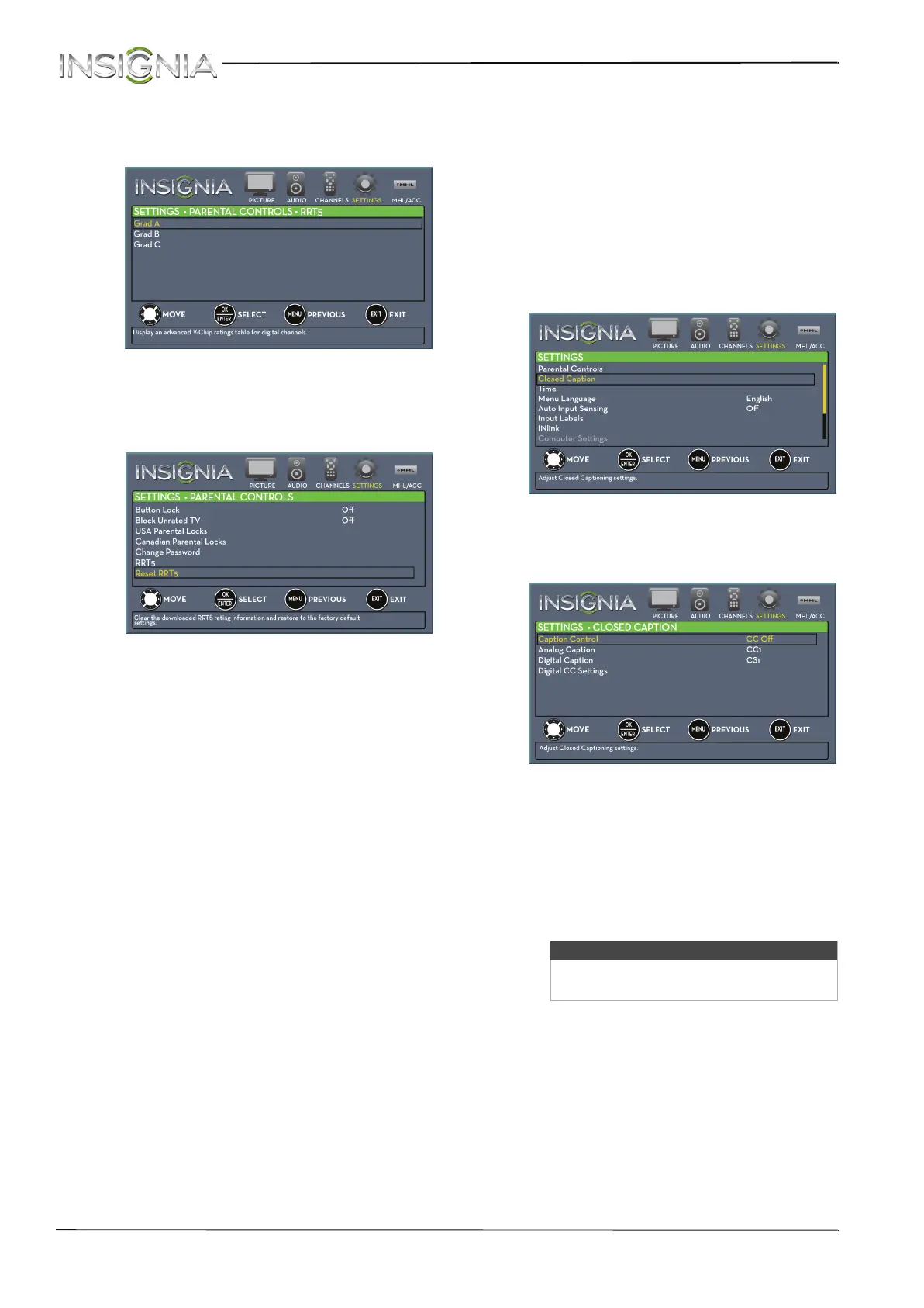 press ENTER. The SETTINGS · CLOSED CAPTION