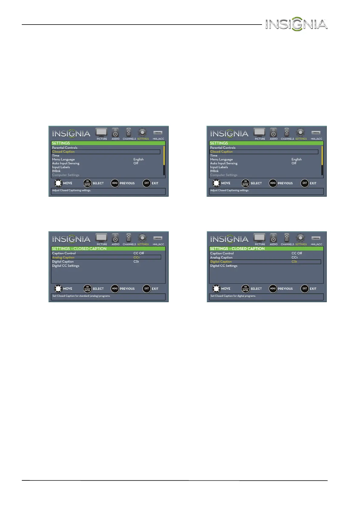press ENTER. The SETTINGS · CLOSED CAPTION