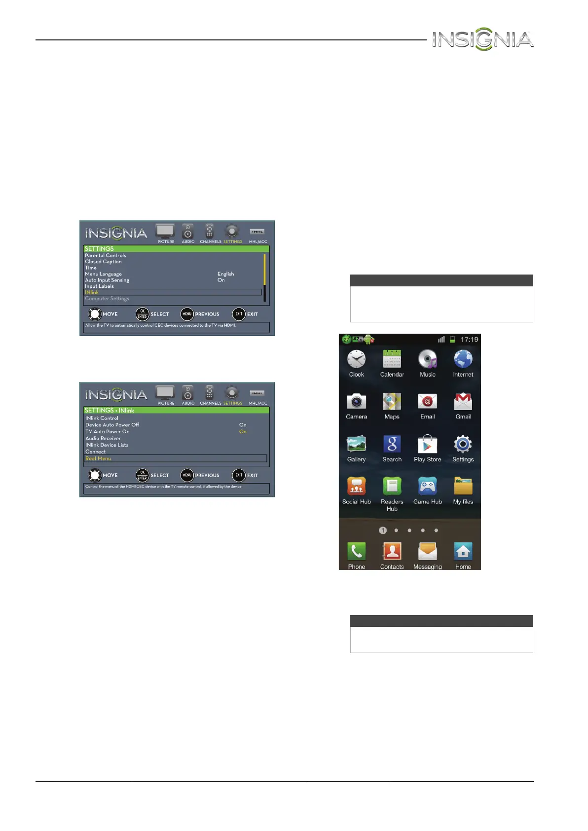 INlink-compatible device you want, then press