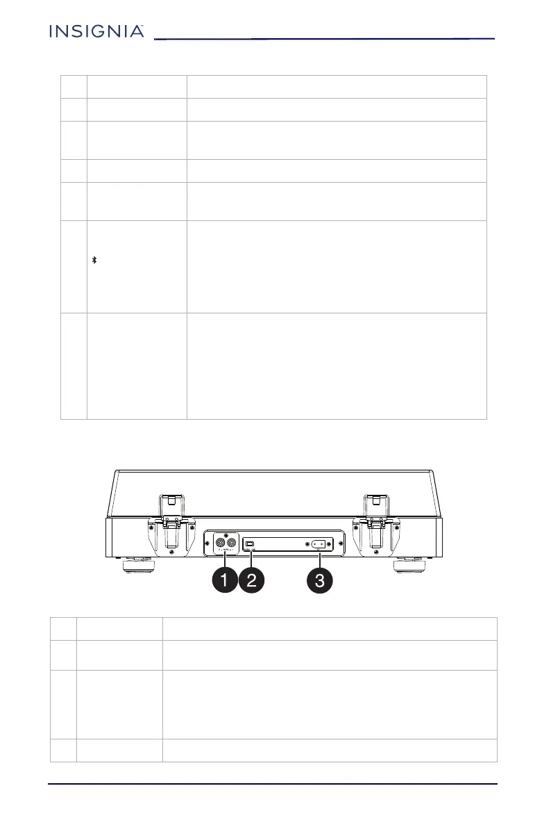 9 Tone arm Holds the stylus that produces sound from the record.