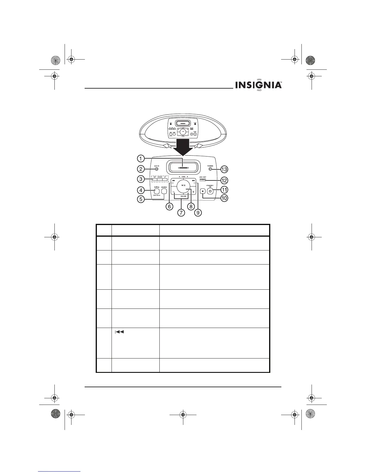 5 SOURCE button Press to cycle through the available sound
