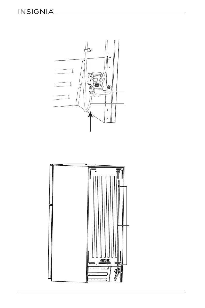 19 Secure the plastic water supply tubing to the back of the cabinet with three