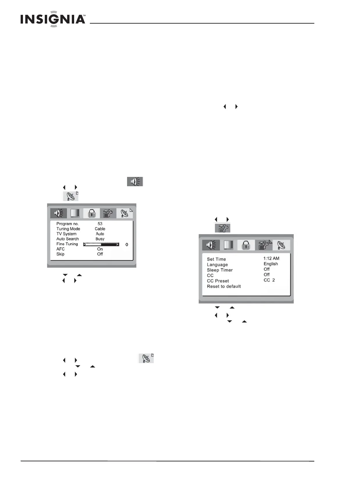 then press or to change the settings.