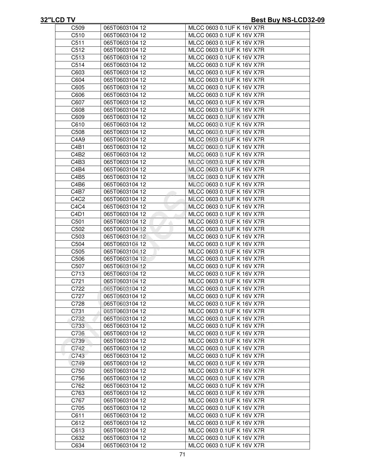 C609 065T0603104 12 MLCC 0603 0.1UF K 16V X7R