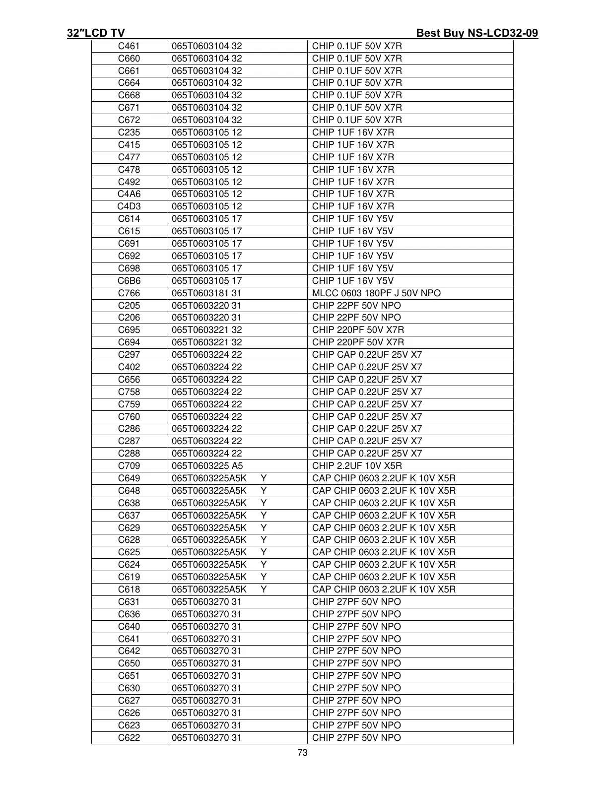 C661 065T0603104 32 CHIP 0.1UF 50V X7R