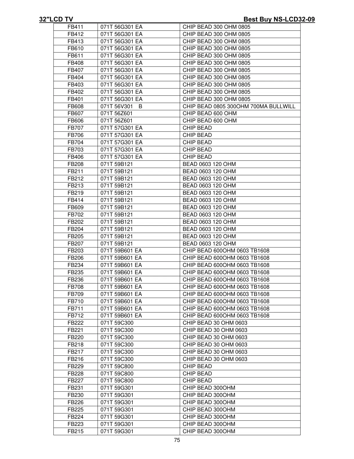 FB710 071T 59B601 EA CHIP BEAD 600OHM 0603 TB1608