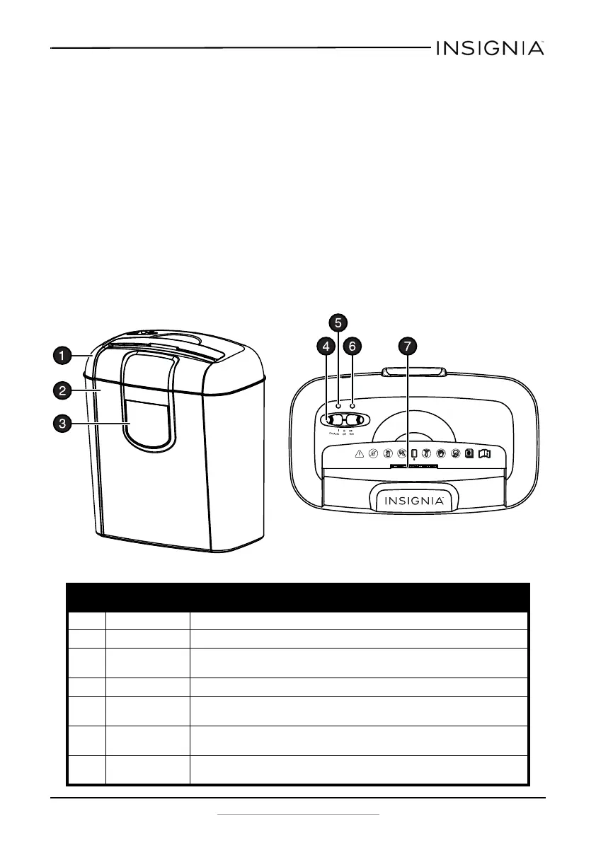 3 Clear window Empty the waste basket when the shredded paper reaches 2/3 of