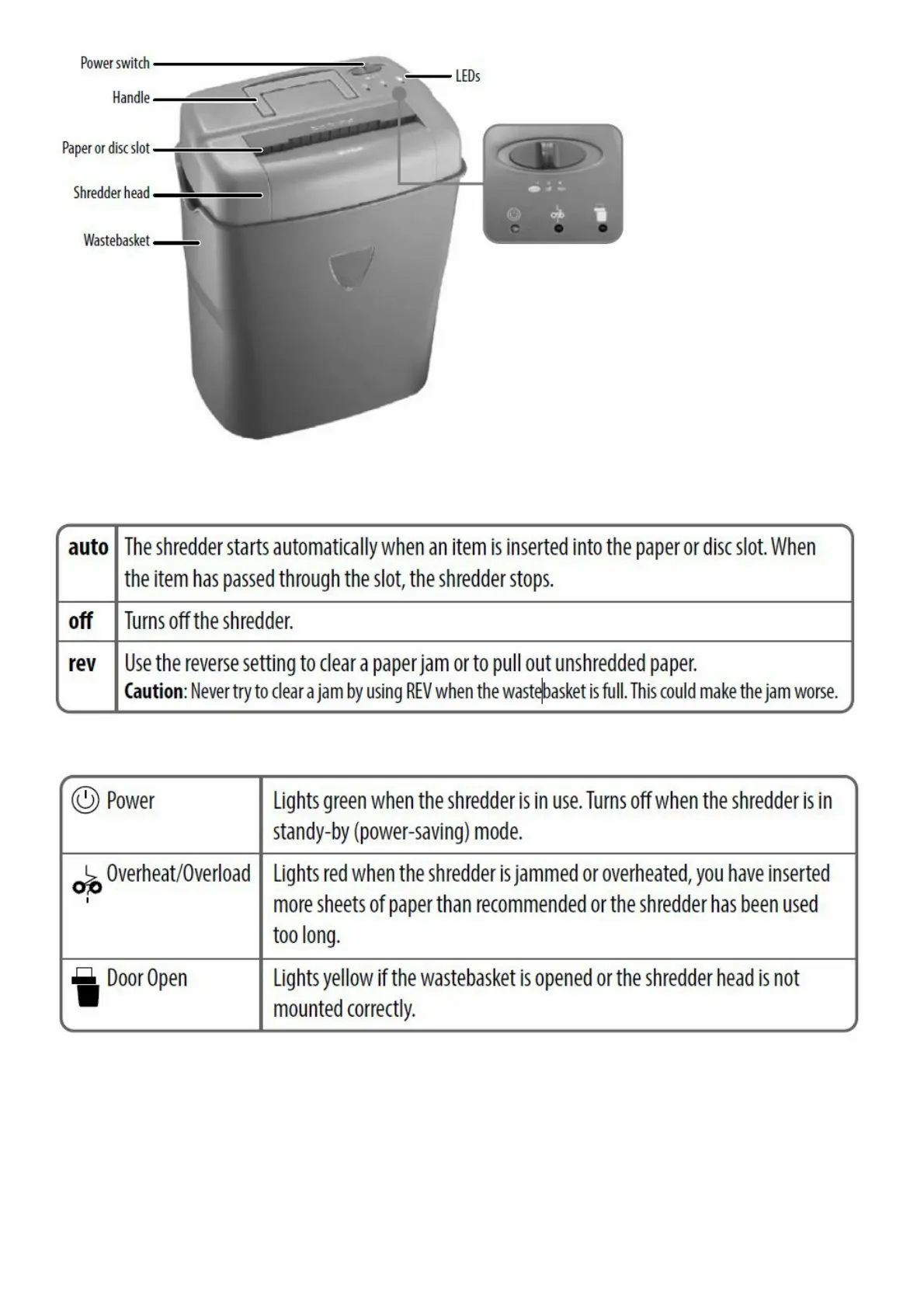 Caution: Your shredder has very sharp, exposed blades on the underside. Use care when