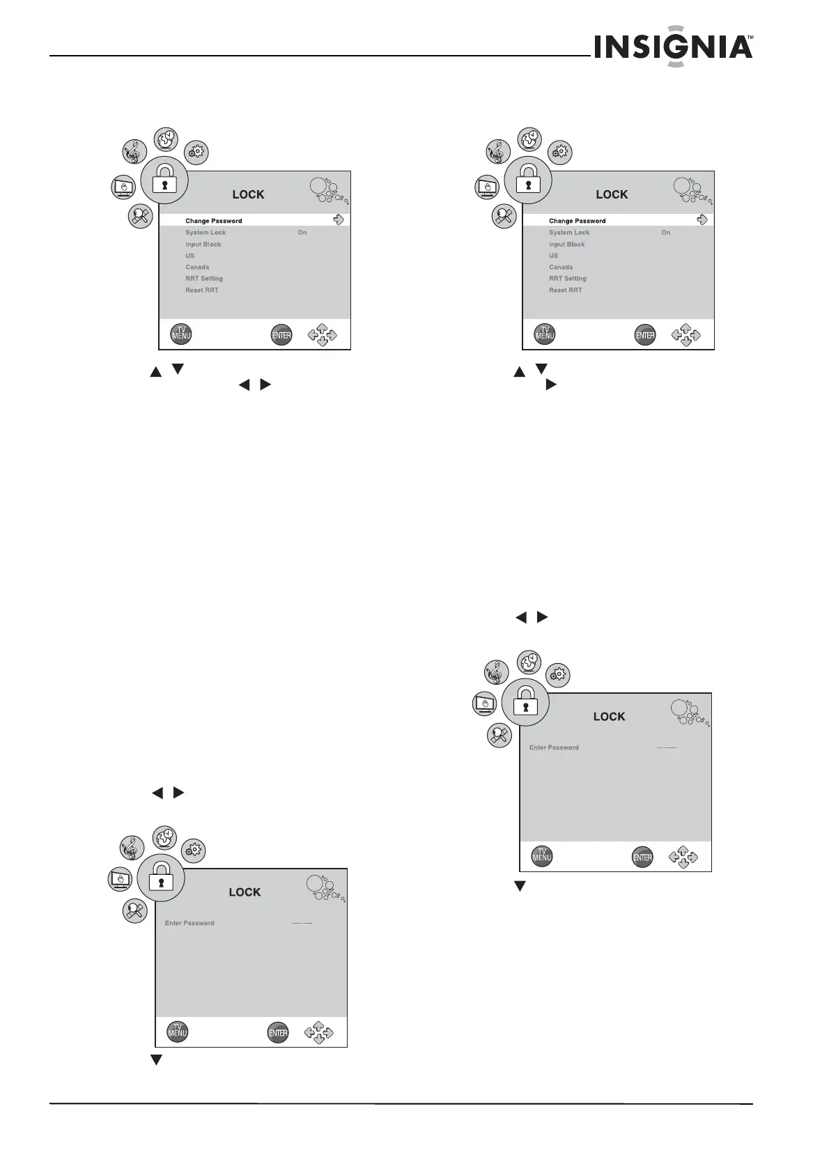 press / to highlight the LOCK icon. The