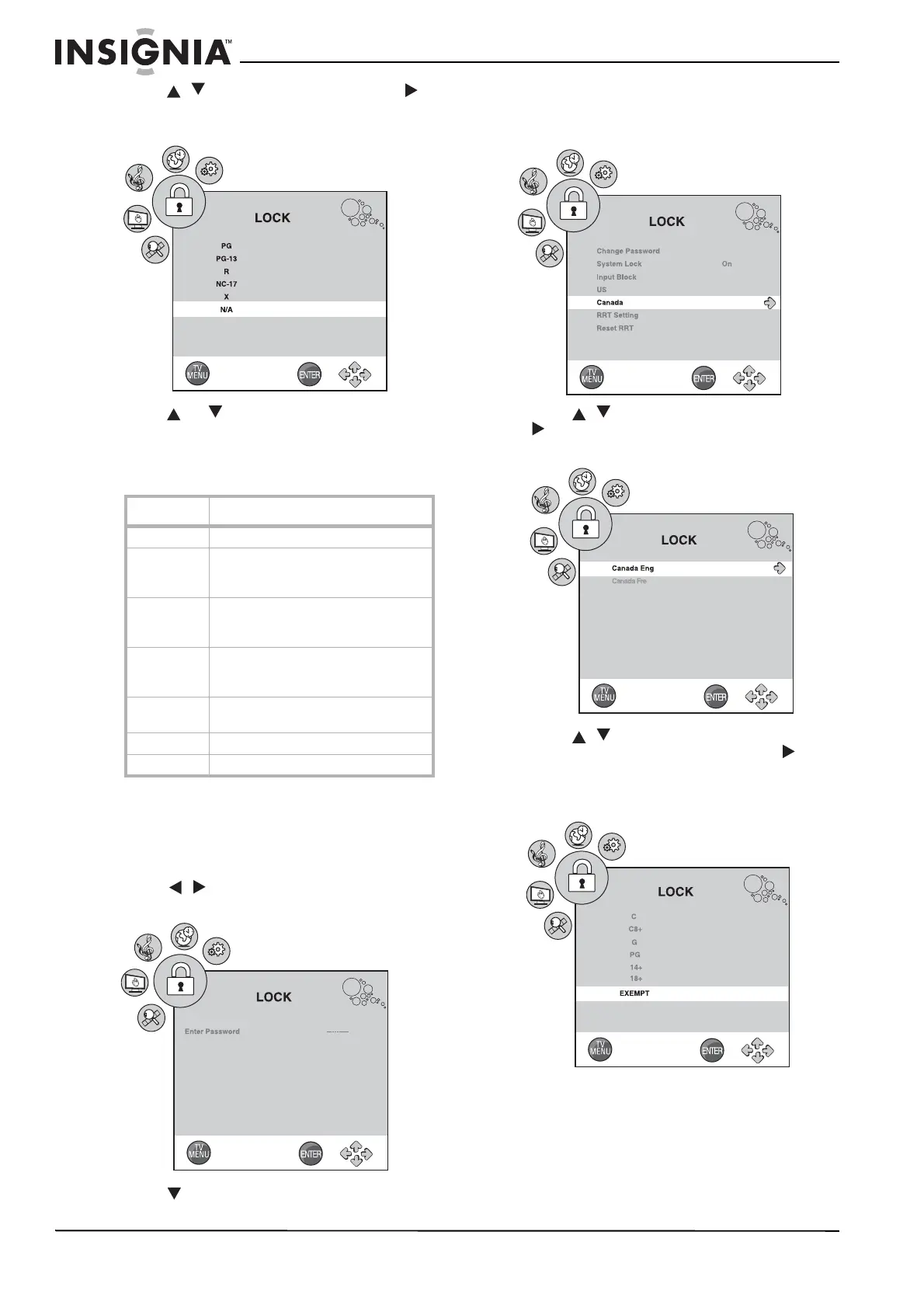 Setting the parental control level - Canadian ratings