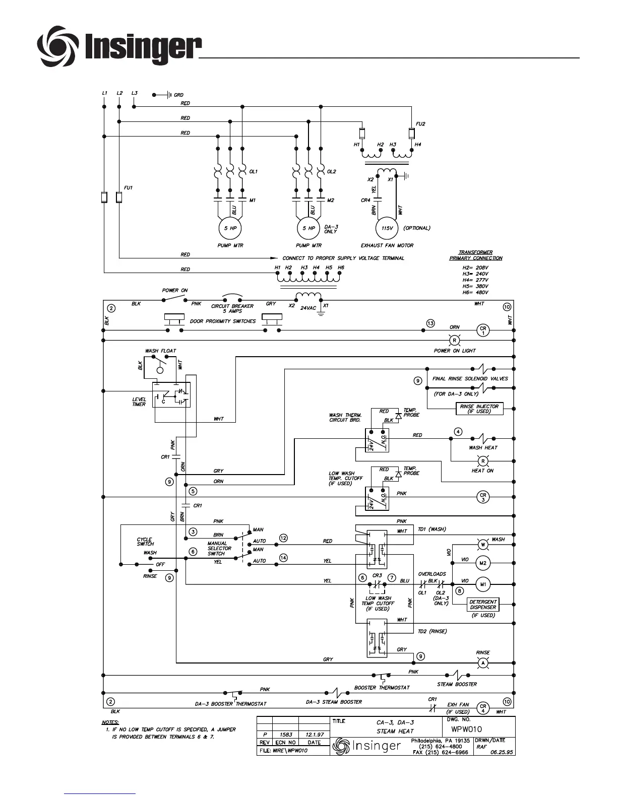 Insinger CA-3 - Part 7 Electrical Schematics and Parts; Steam Heat Electrical Schematic