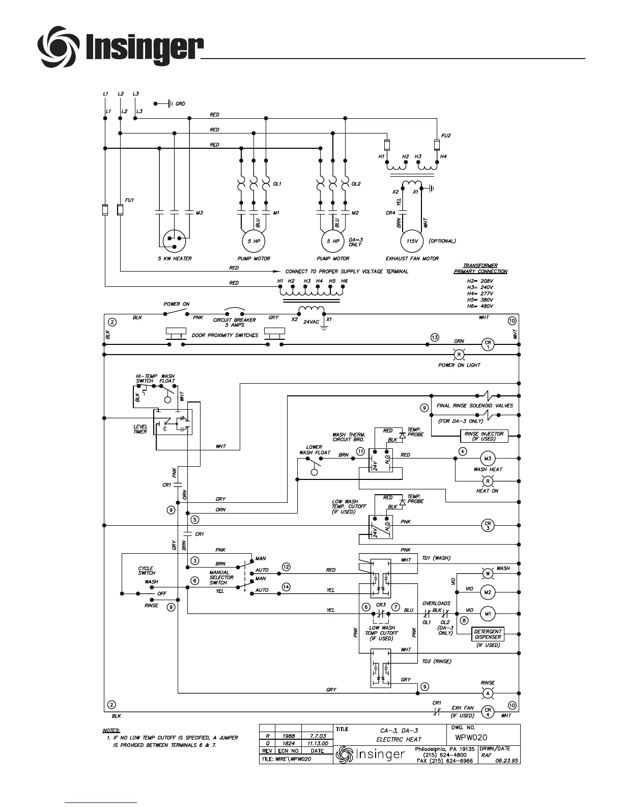 Insinger CA-3 - Electric Heat Electrical Schematic