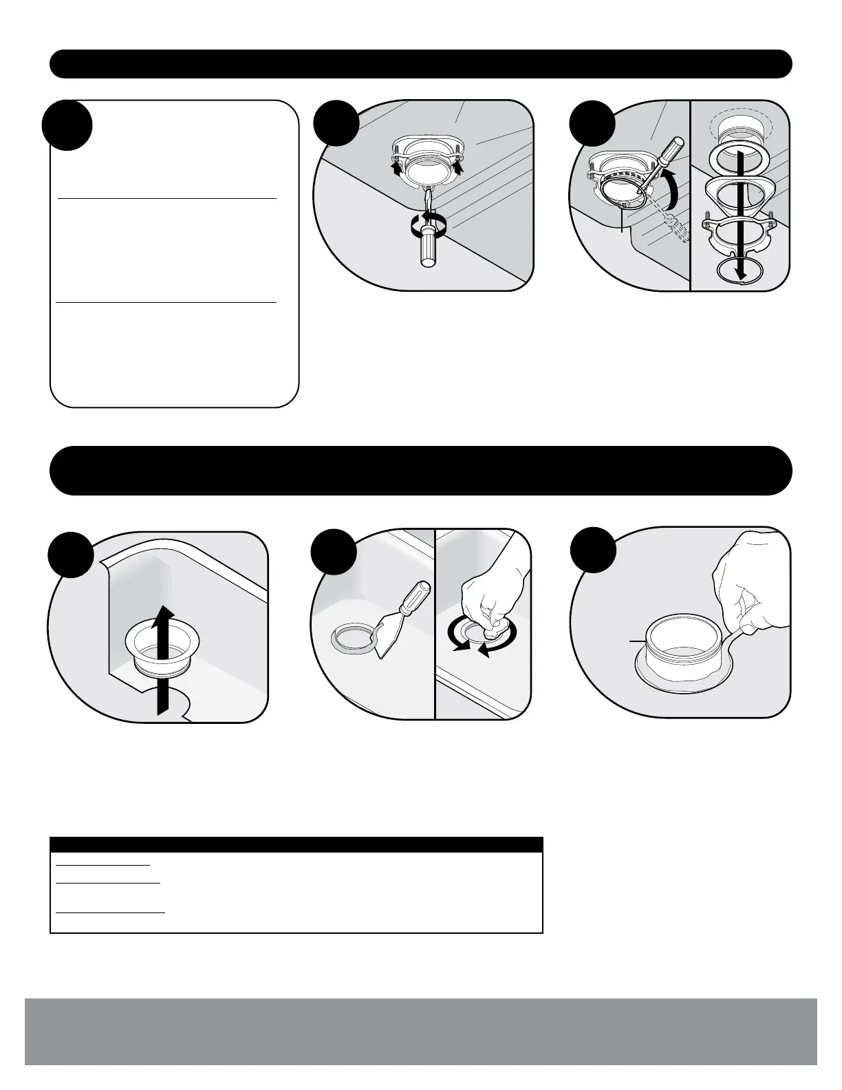Removal of old disposer/Extracción del triturador viejo/Retrait de l’ancien broyeur