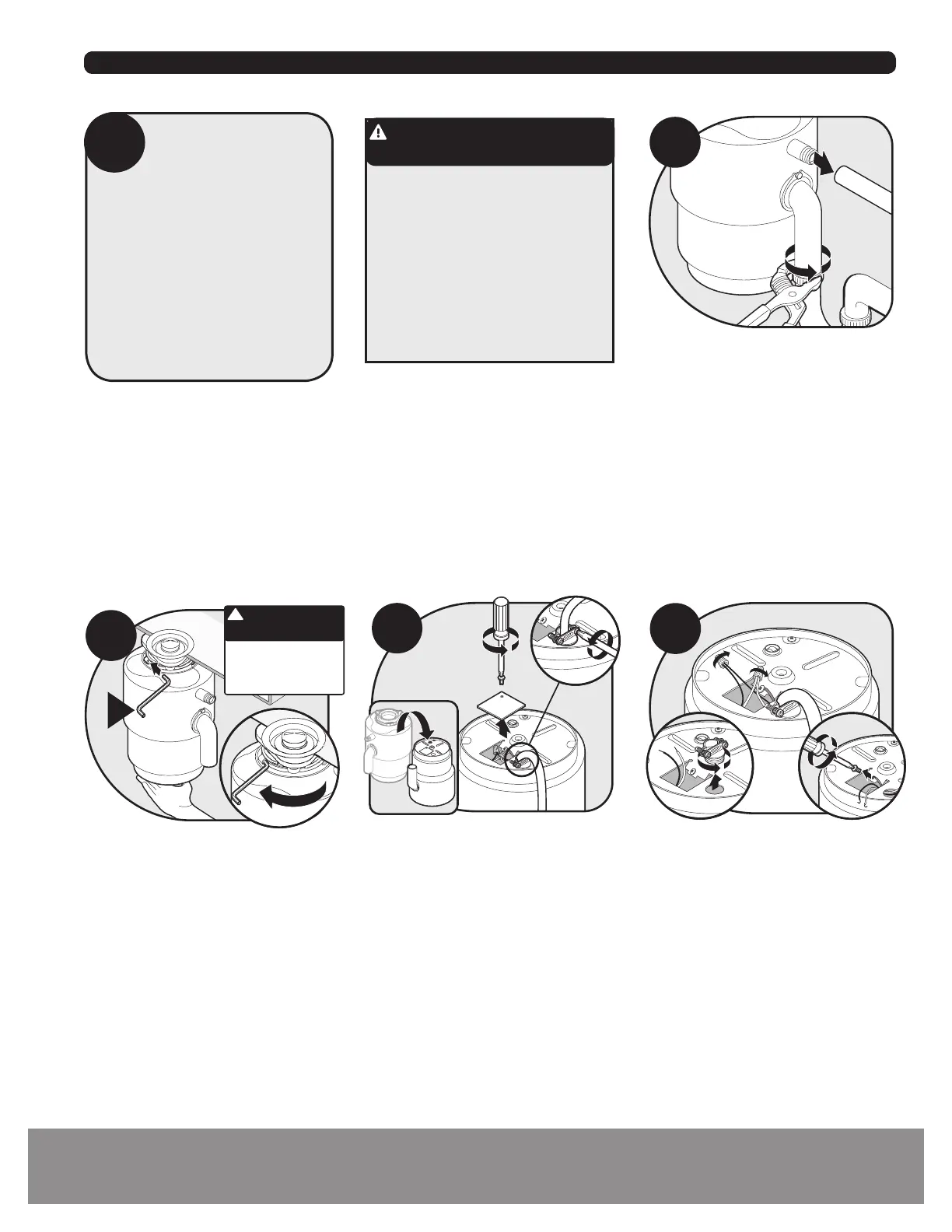 Removal of old disposer/Extracción del triturador viejo/Retrait du broyeur usagé