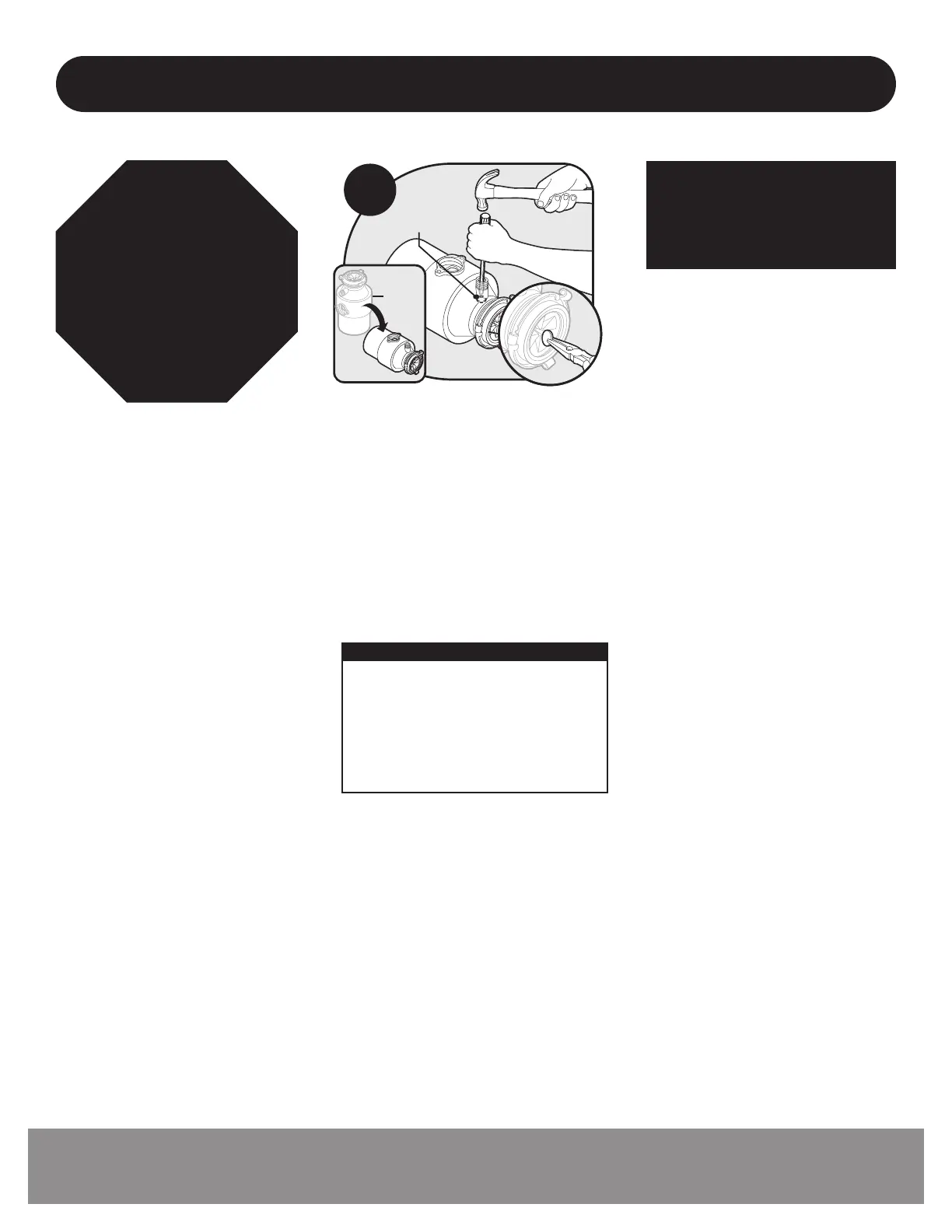 is knocked out. Turn disposer (J) onto side and