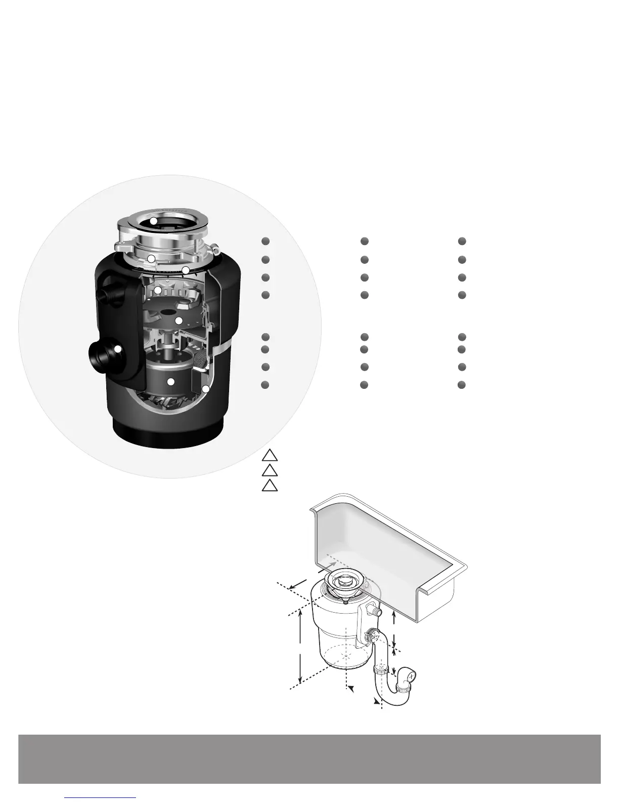 Compact Size Food Waste Disposer/Triturador de Desperdicios de Alimentos de Tamaño Compacto/Broyeur de Déchets de Taille Compacte