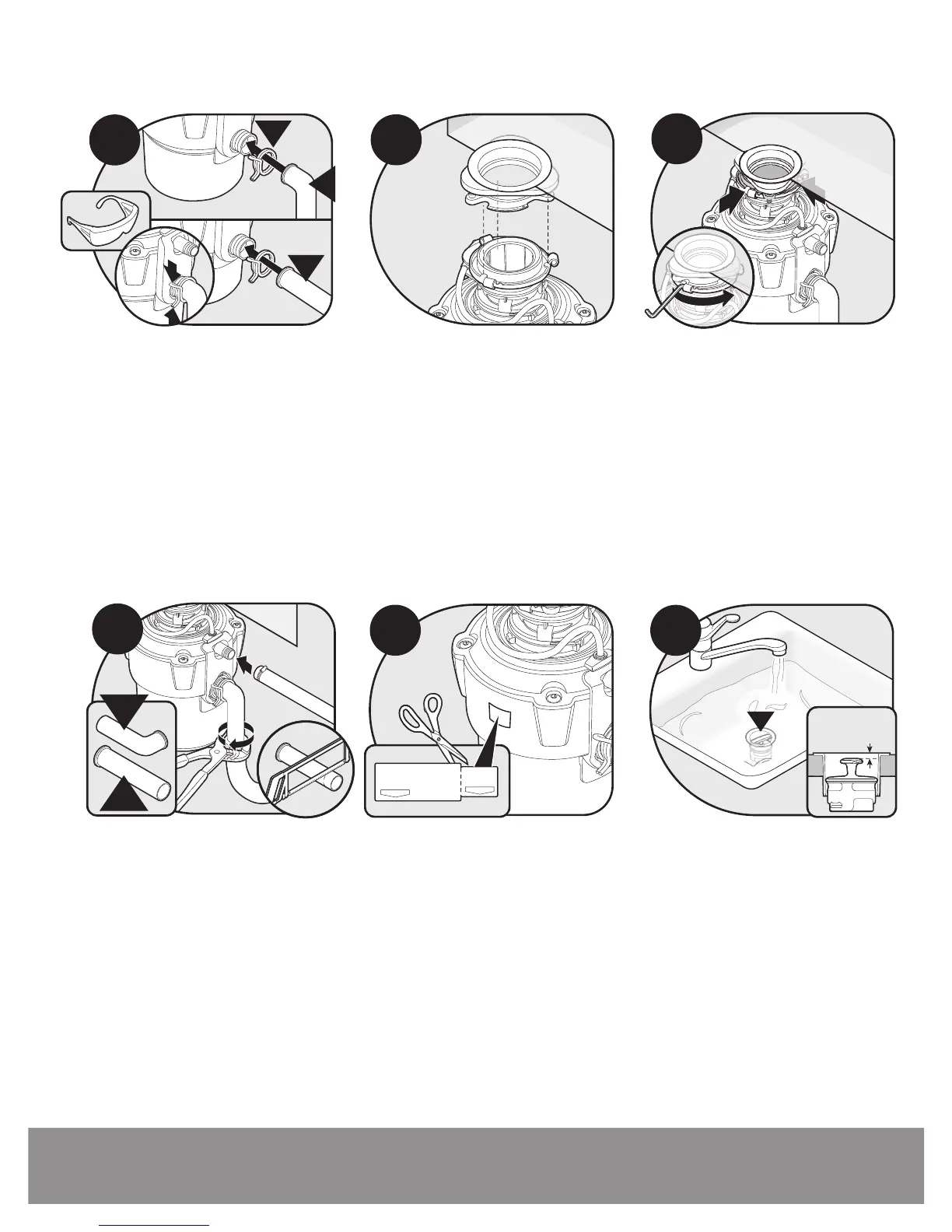 Hang disposer by aligning 3 mounting tabs