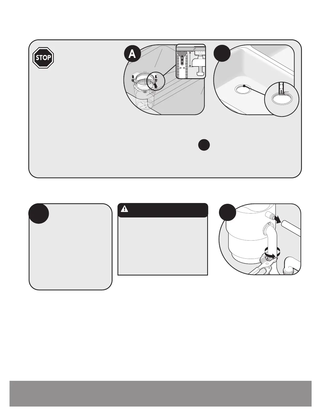 Removal of old disposer/Extracción del triturador viejo/Retrait de l’ancien broyeur.