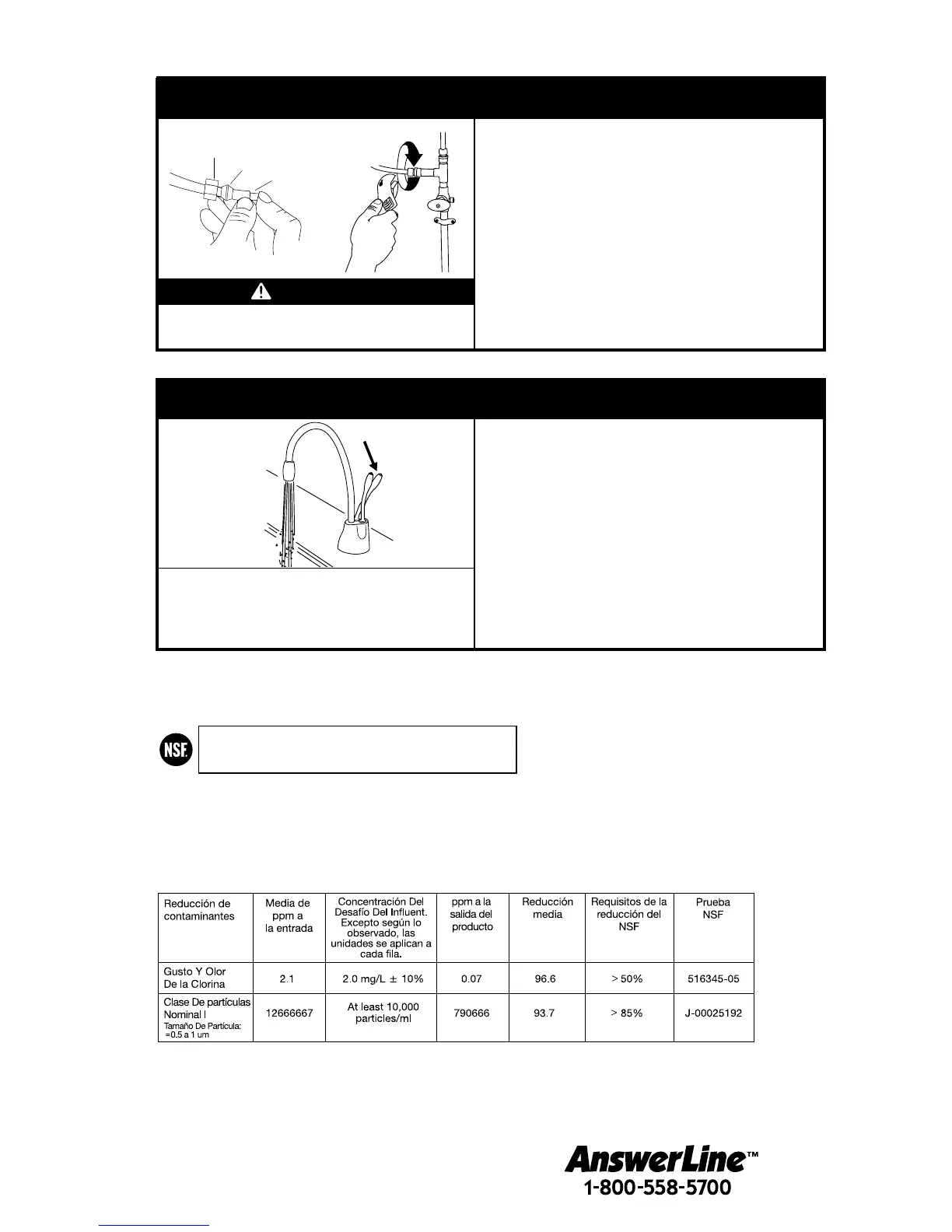 desinfección adecuada anterior o posterior al sistema. Sólo debe utilizarse con agua fría. Los sistemas deben
