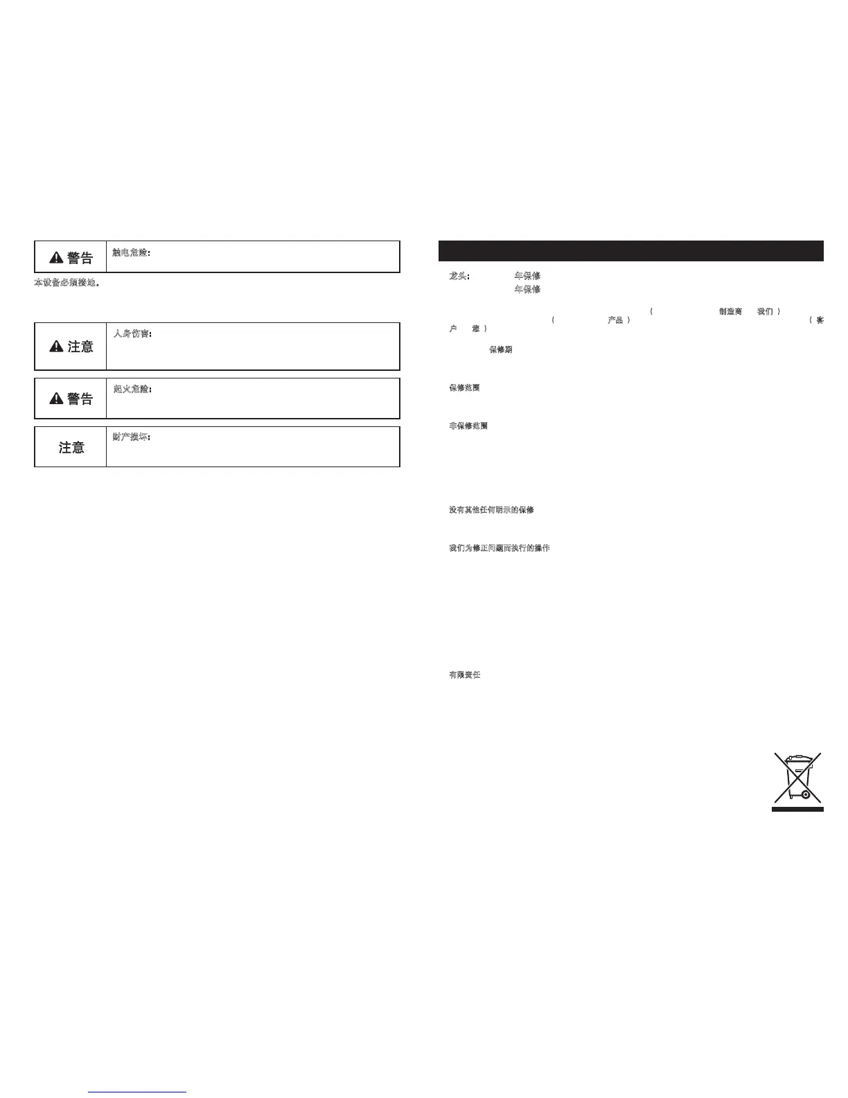 产品中发现的材料或工艺上的瑕疵,包括所有零部件更换和人工费用。在本有限保修条款下,您所享有的唯一补