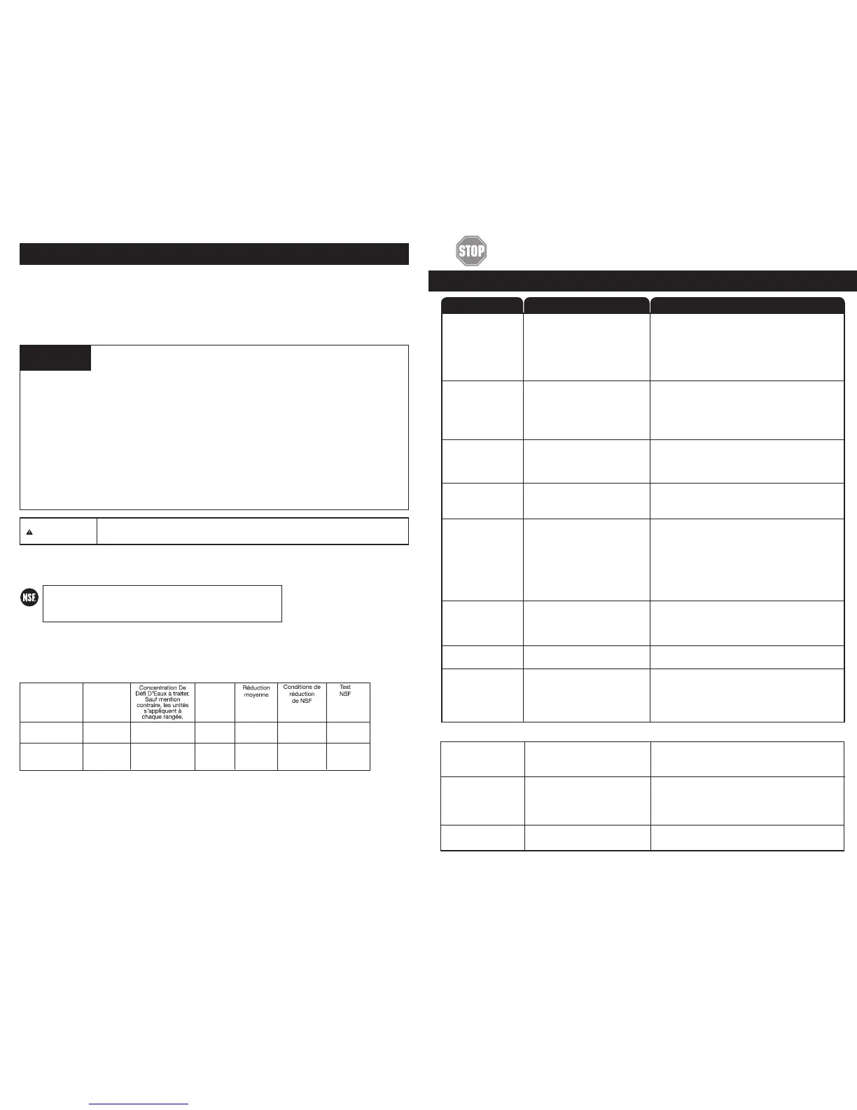 • Le non-remplacement de la cartouche de filtre jetable au moment recommandé peut