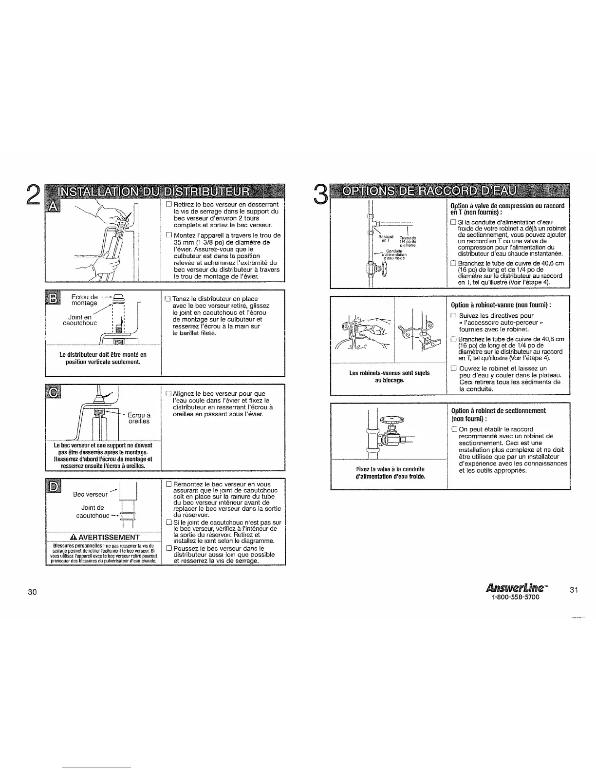 fournies avec le robinet.