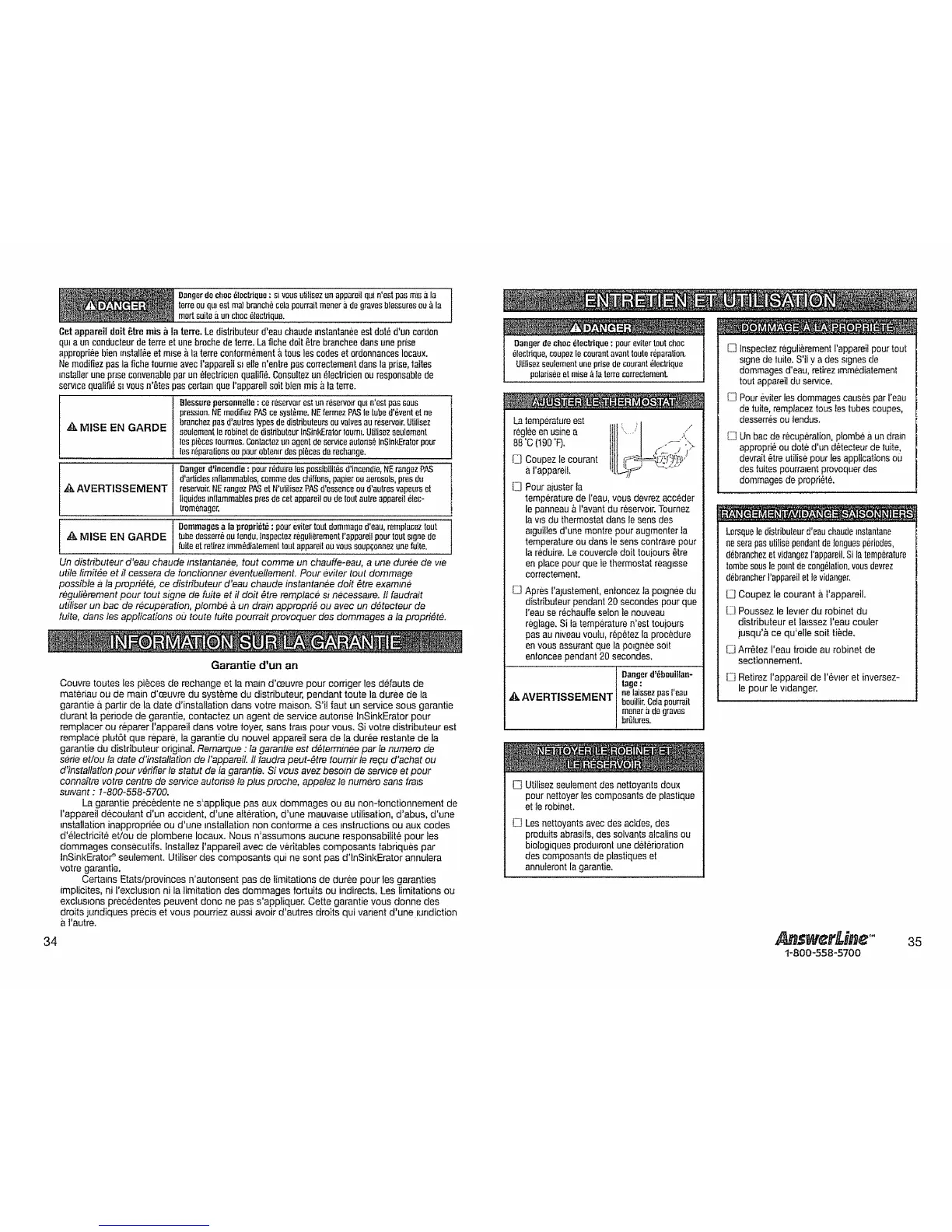 durant la pefiode de garantie, contactez un agent de service autorise InSinkErator pour