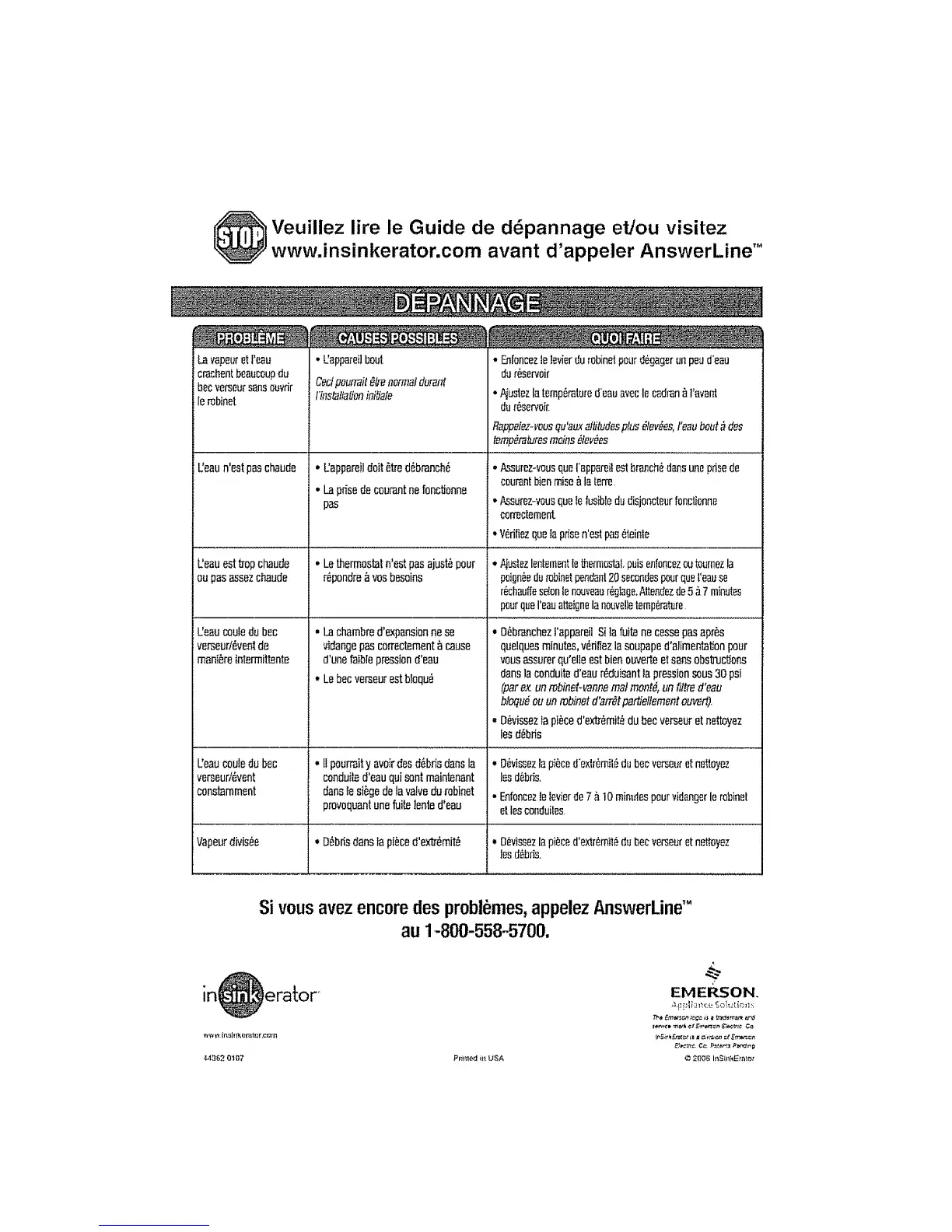 www.insinkerator.com avant d'appeler AnswerLine'"