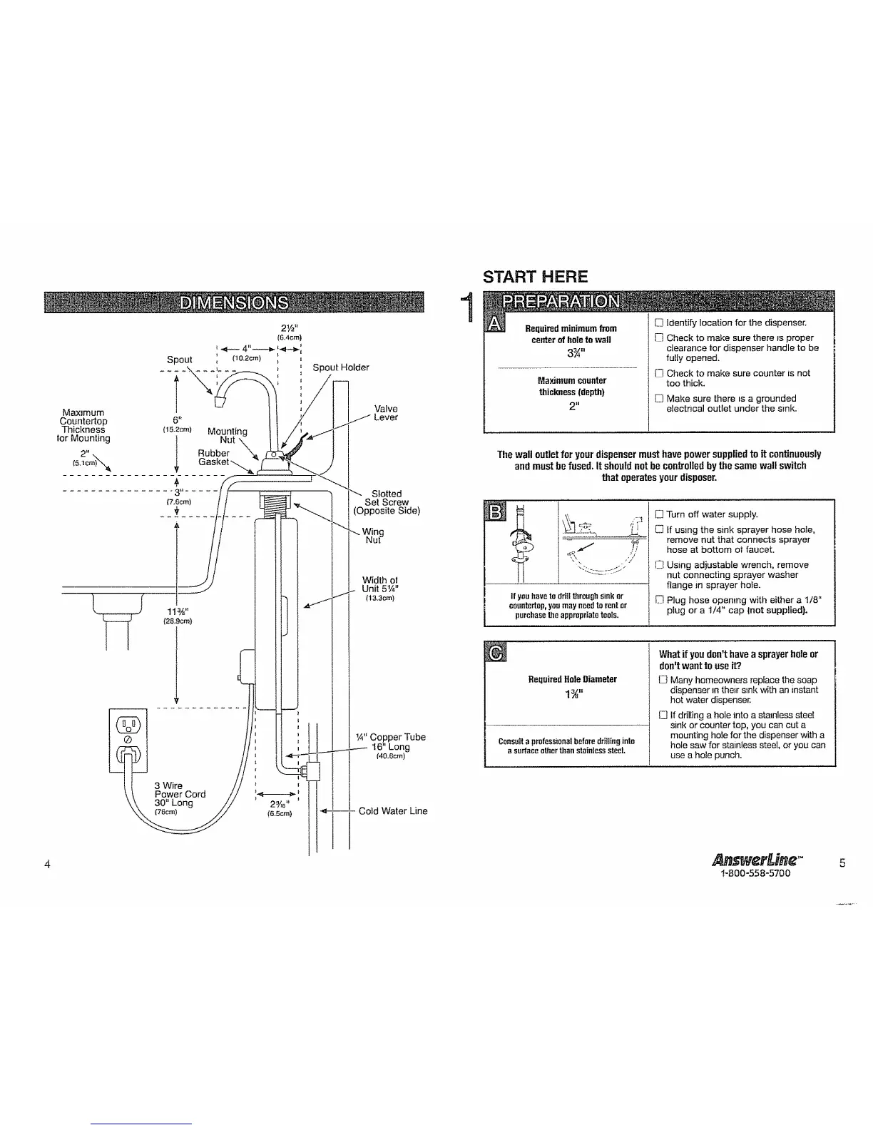 Thewall outletfor yourdispensermust havepowersuppliedto it continuously