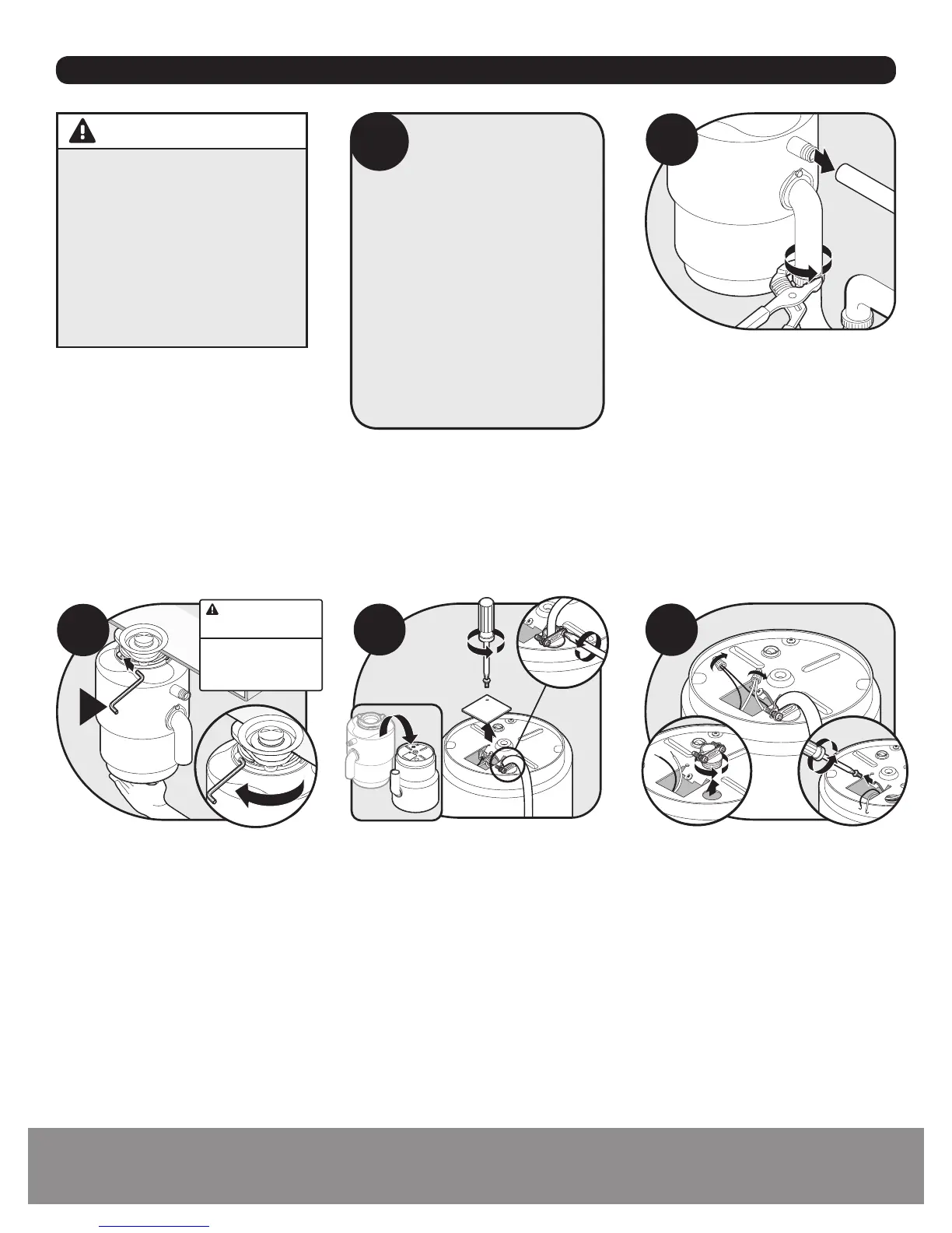 Removal of old disposer/Extracción del triturador viejo/Retrait de l’ancien broyeur