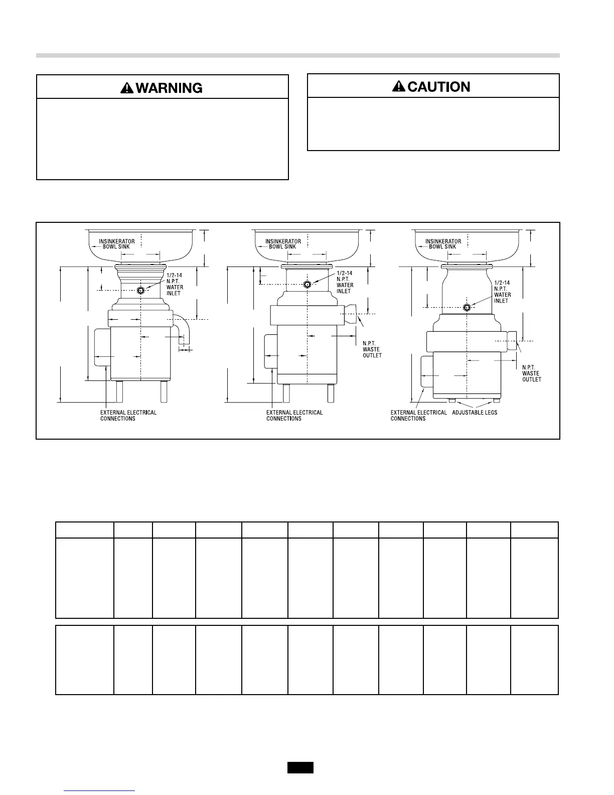 Table 1. Foodservice Disposer/Mounting Adaptor Combinations