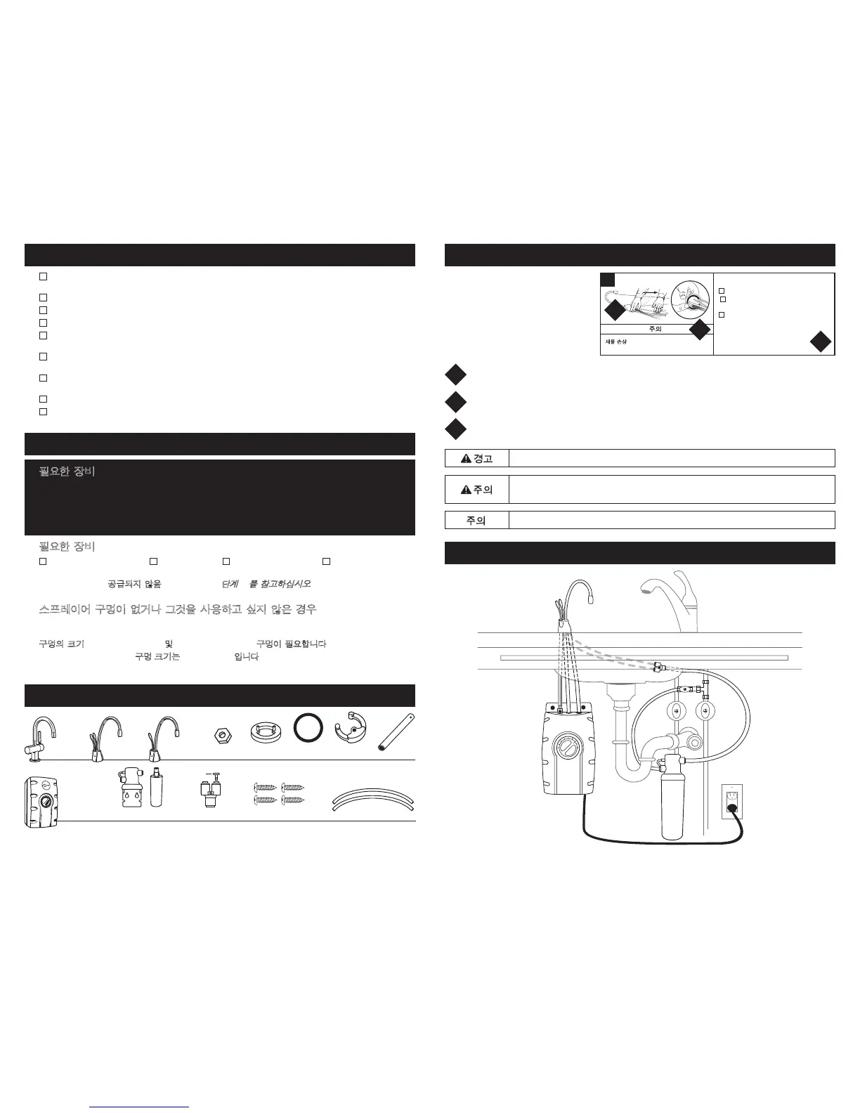 ■ 이 온수 수도꼭지를 설치하거나 사용하기 전에 사용자의 만족과 안전을 위하여 모든 지침,