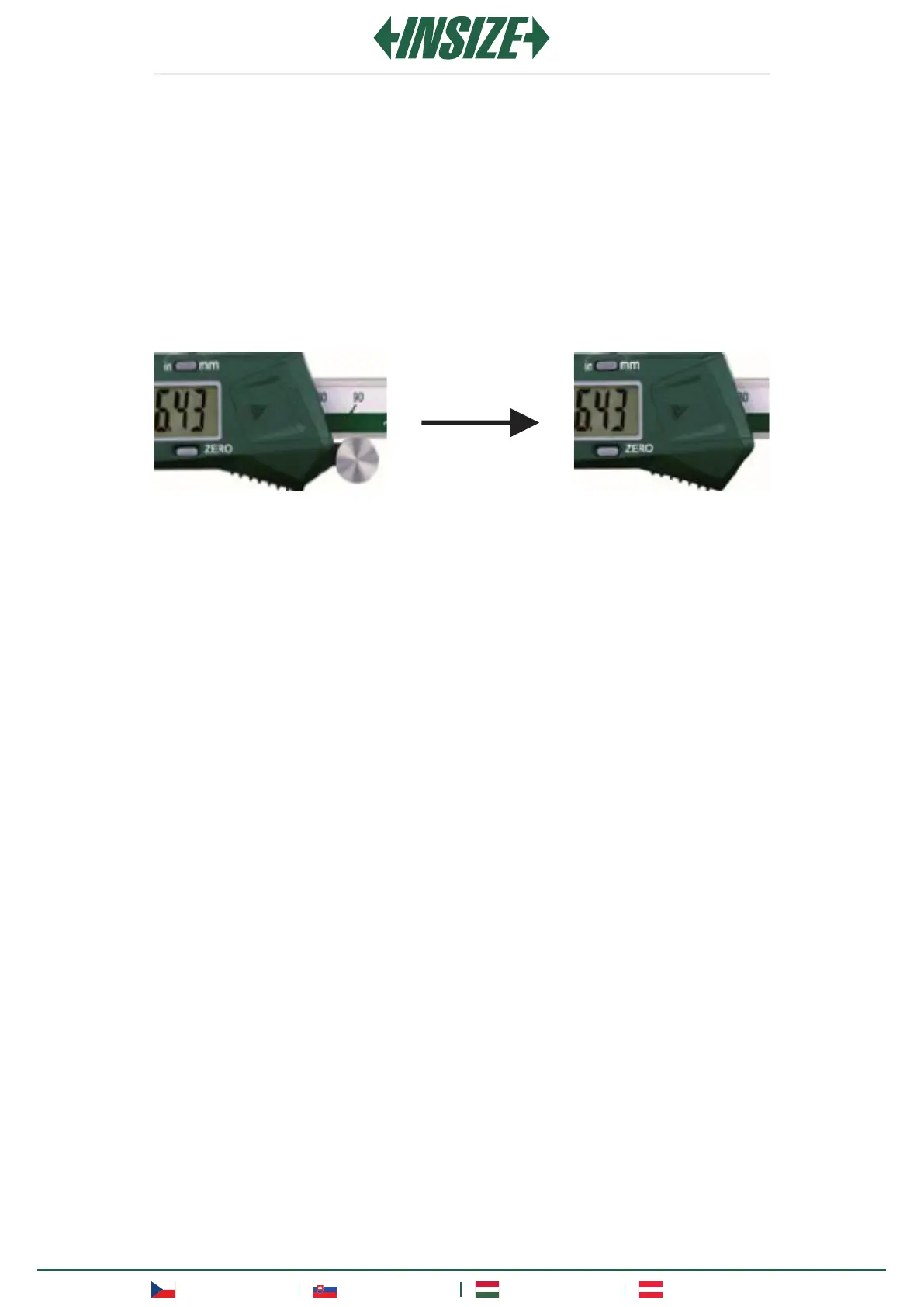 Zárja be a külső állkapcsokat, majd nyomja meg a “ZERO” gombot a tolómérő nullázásához.