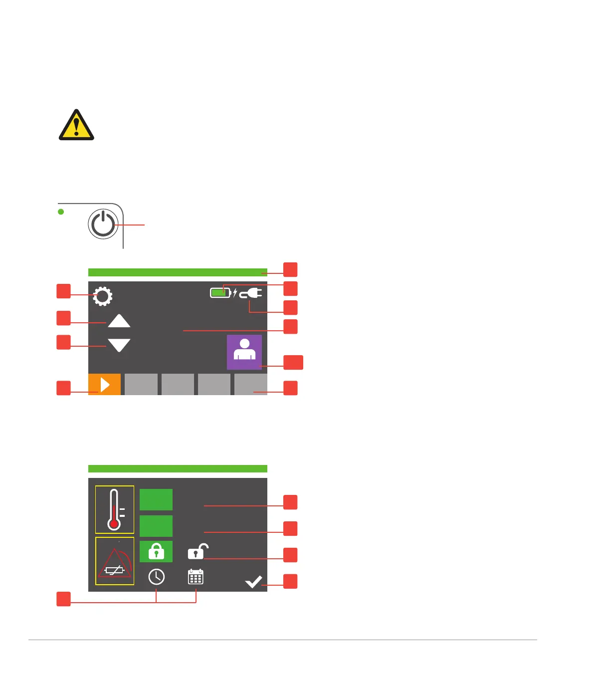 Below is a list of meanings of all the buttons on the display and indicator lights:
