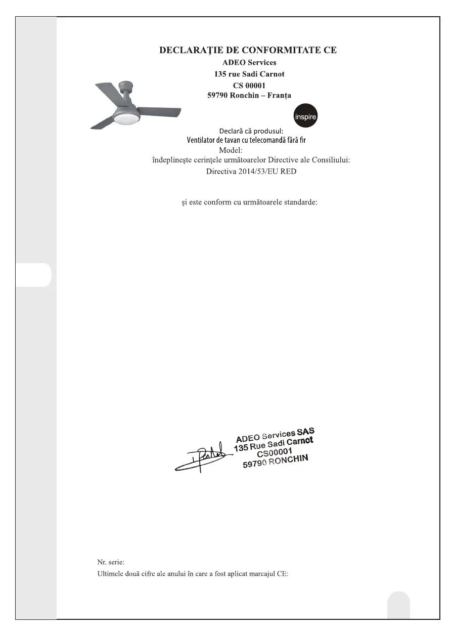 Această declarație de conformitate este eliberată pe răspunderea exclusivă a producătorului.