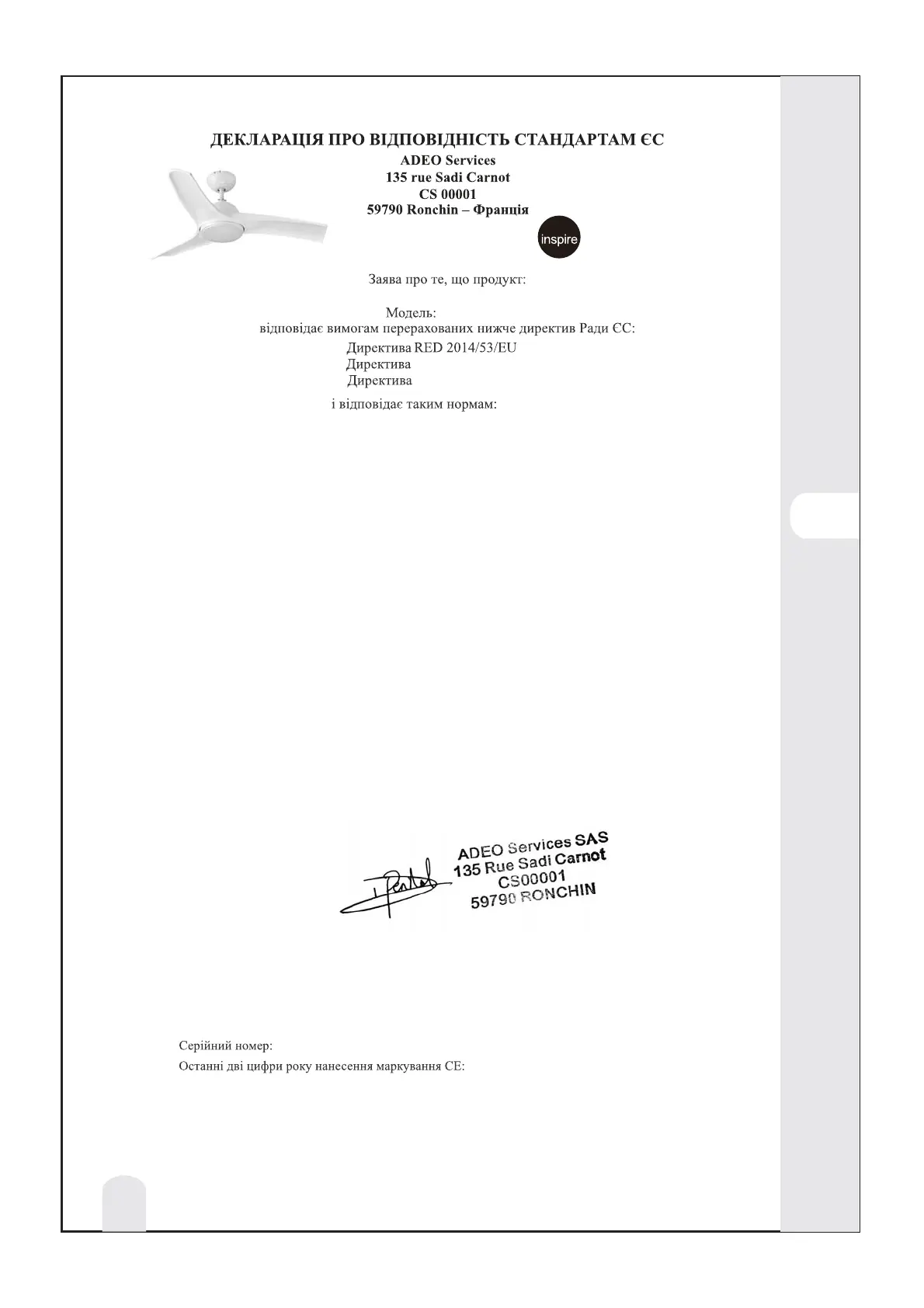 ADEO Services 135 Rue Sadi Carnot - CS 00001 59790 RONCHIN – France