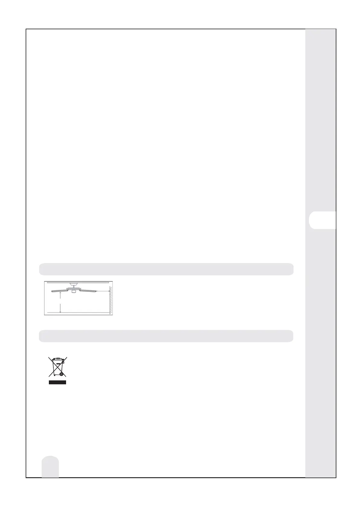 Ventilatorul trebuie instalat astfel încât lamele să e la o distană