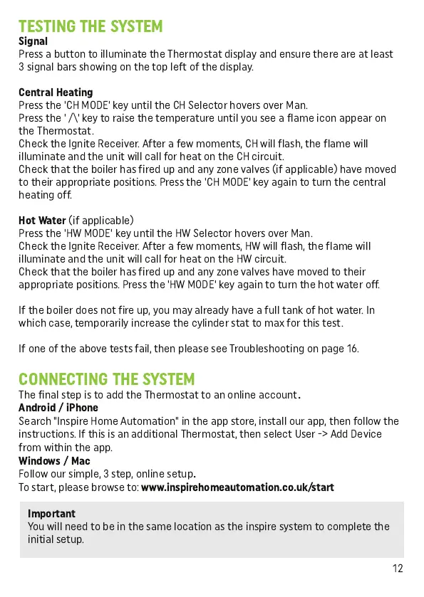 Check that the boiler has fired up and any zone valves (if applicable) have moved
