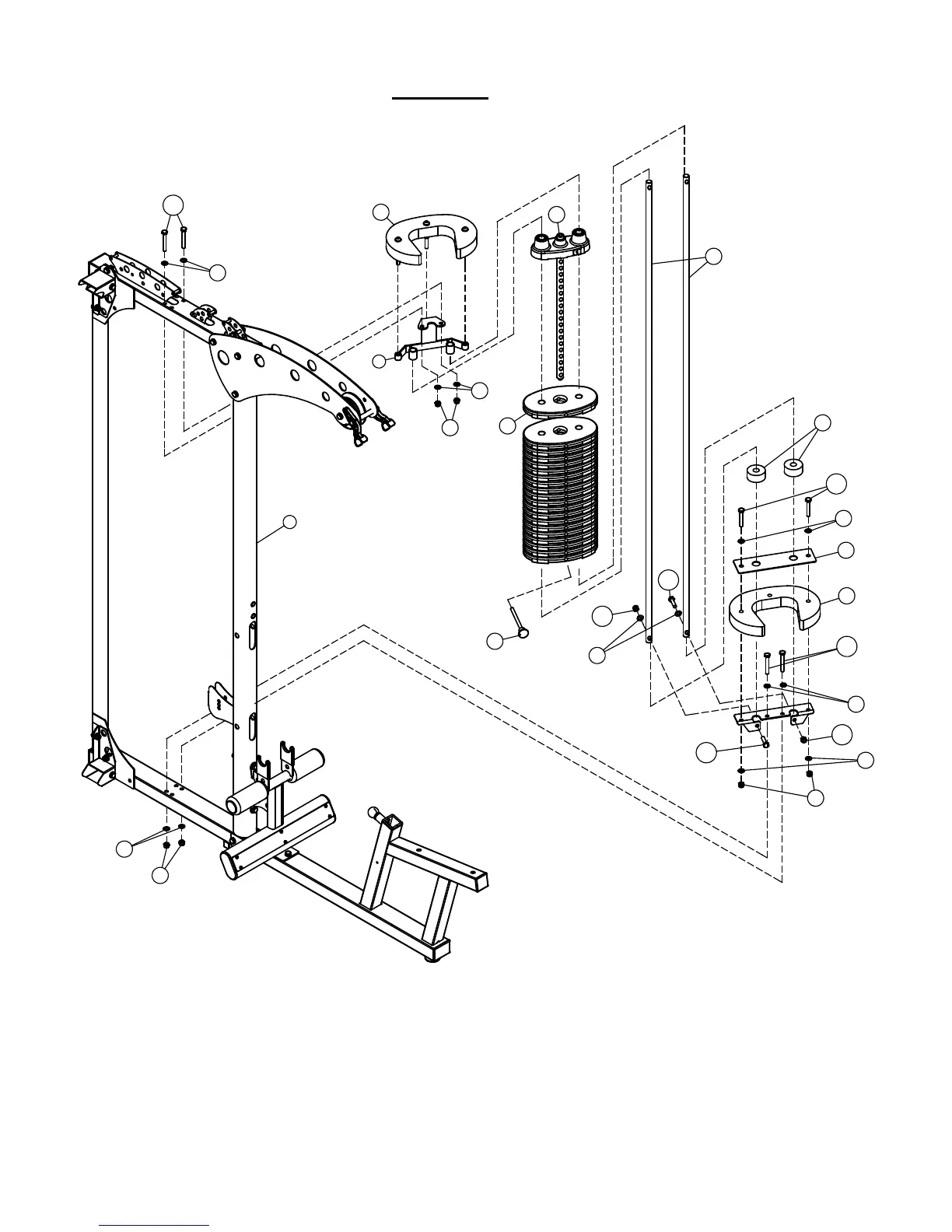 center of the gym as shown. If installing the LP2 Leg Press, then angle the weight stack towards