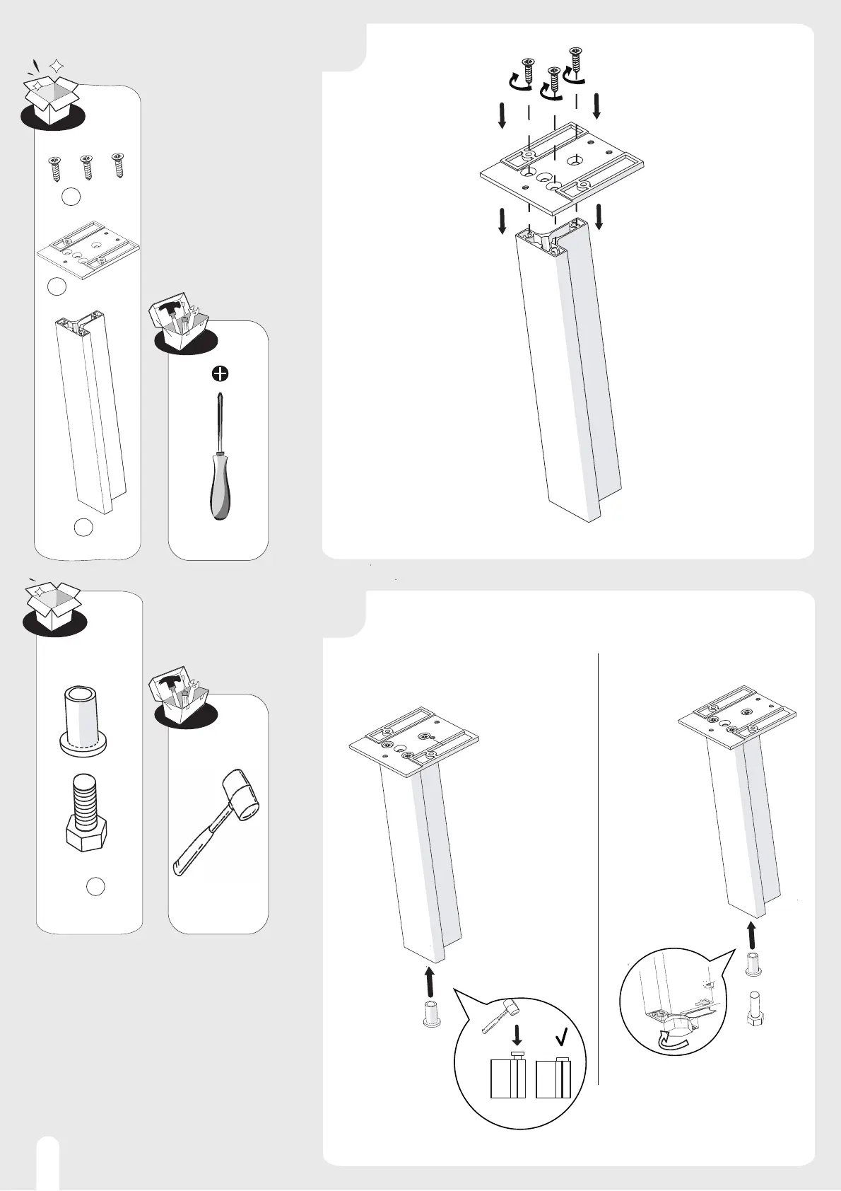Inspire STUDIO - Assembly Steps 1 & 2; Step 1: Base Plate to Leg Attachment; Step 2: Connecting Leg Assembly