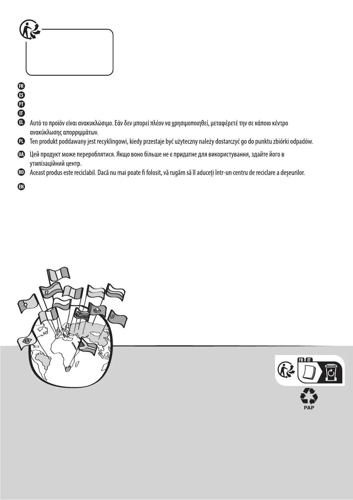 Este produto é reciclável. Se deixar de o utilizar, entregue-o num centro de reciclagem de resíduos.