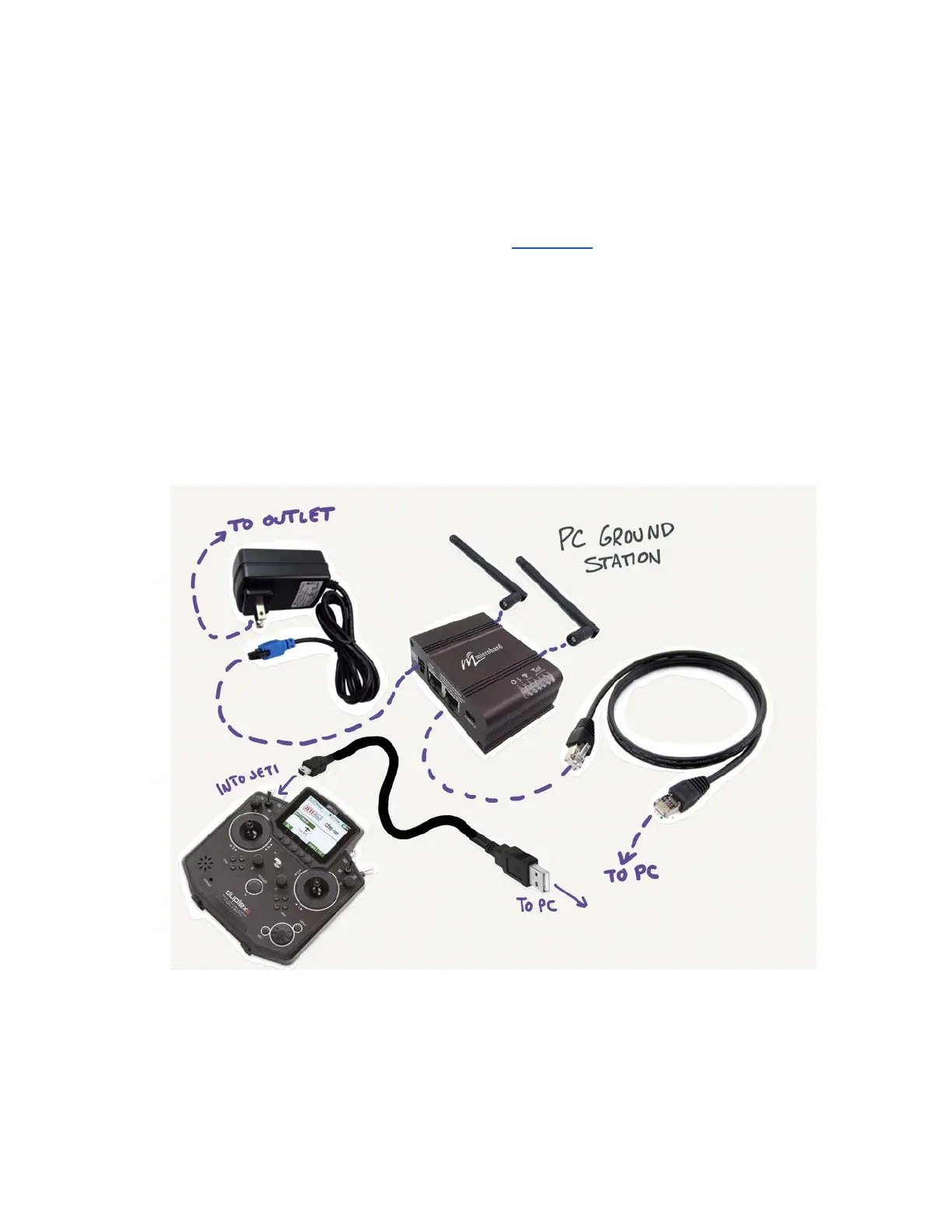 between the Jeti controller and the PC. Finally, connect the Microhard to power