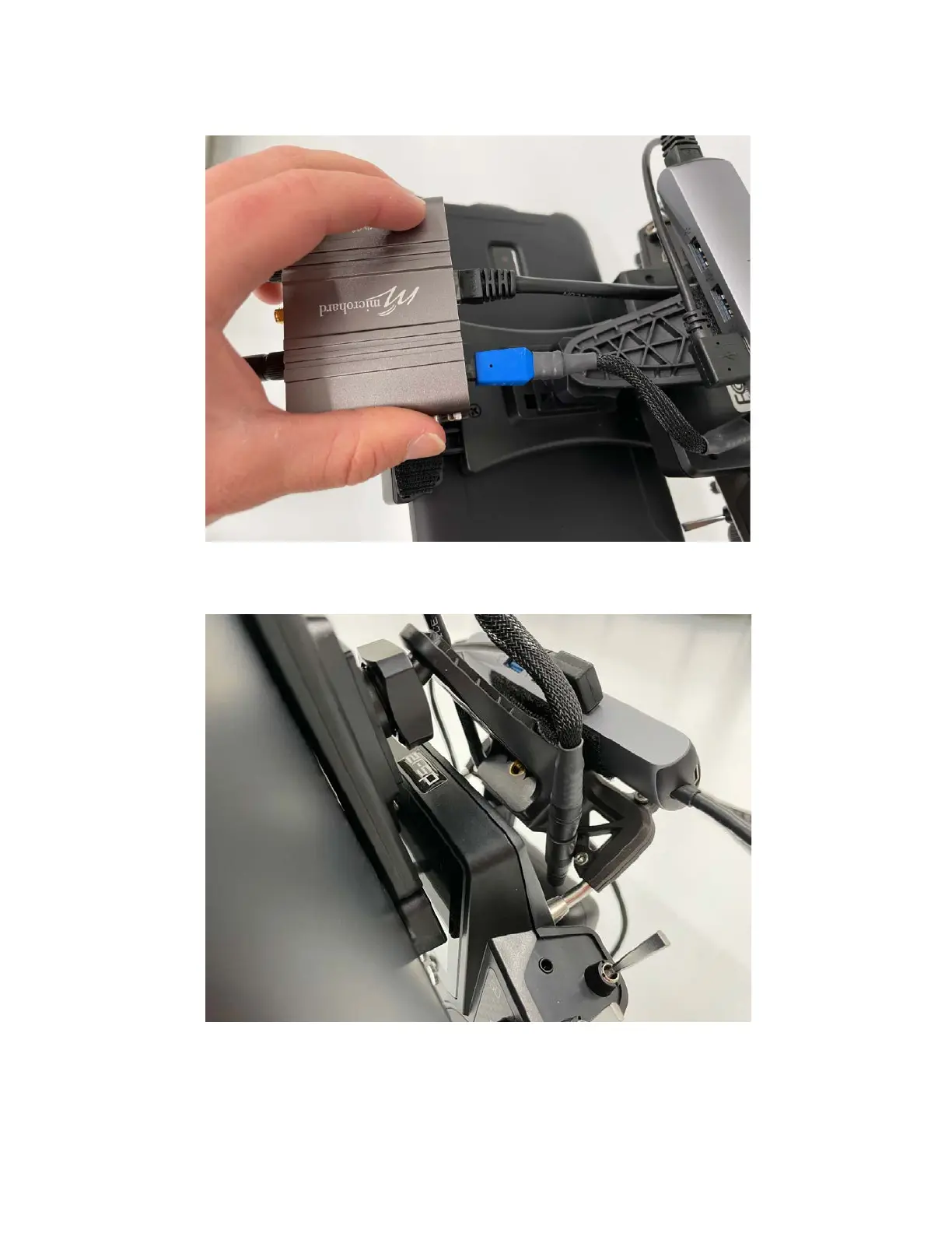 Note: We recommend running these cables between the tablet mount and