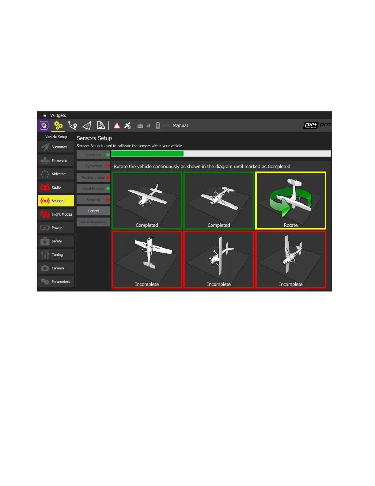 1. Hold the drone steady until the orientation highlights yellow in QGC