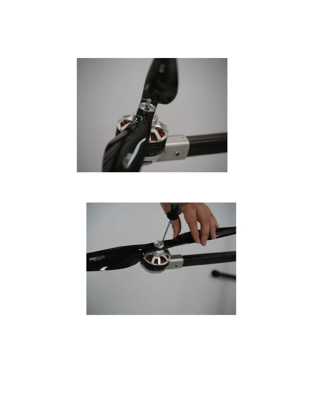 each propeller on its motor. Make sure each propeller is fully seated, with the aluminum