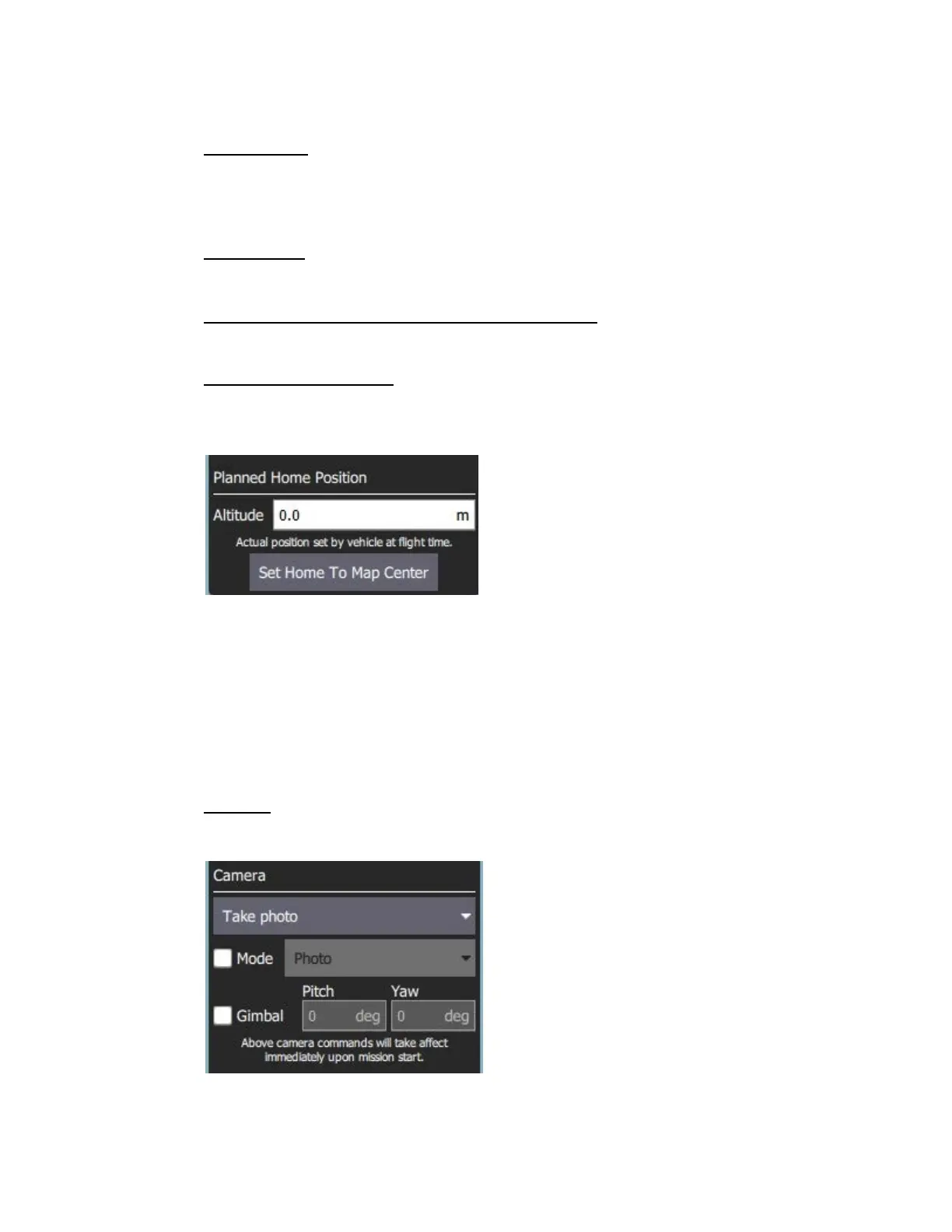 The section allows you to set the Altitude and Set Home to Map Center (you can
