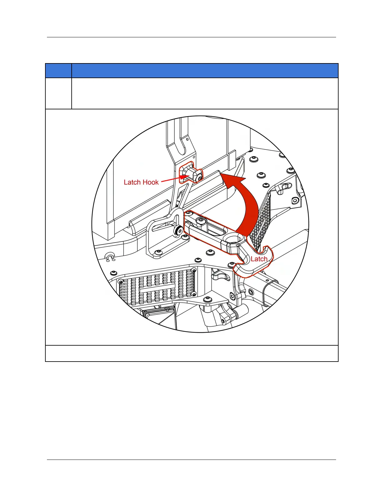 Locate the Latches on both sides of the base of the battery platform (see below). Lift