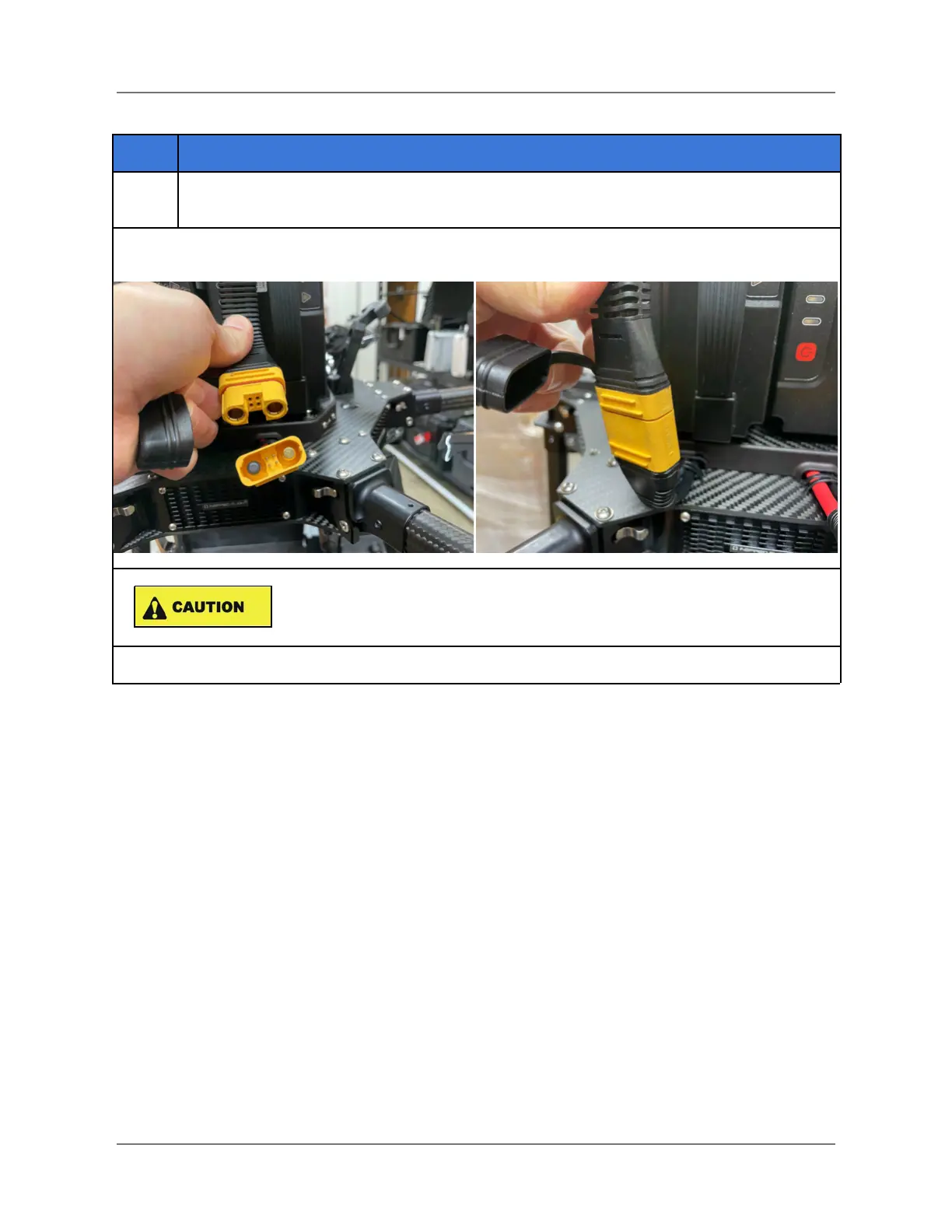 Plug the battery cables into the battery connectors on the aircraft (see below).