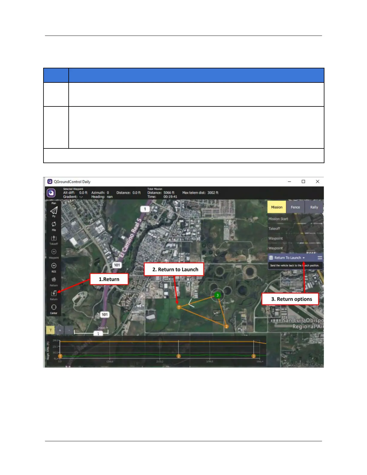 When you select Return, the default is Return to Launch (RTL), as shown in the